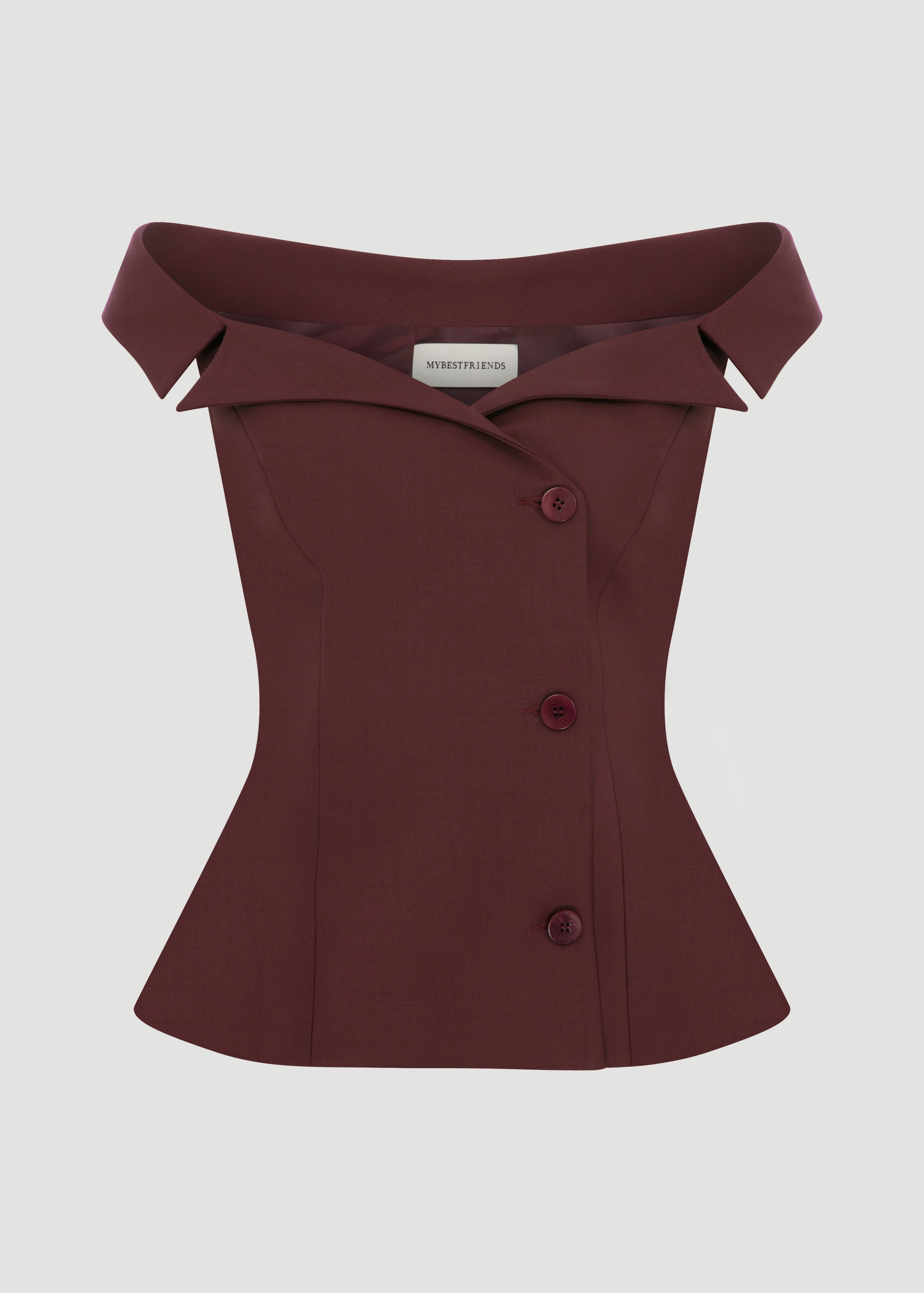 Prenses yakalı, düğme detaylı, bedene oturan yelek.