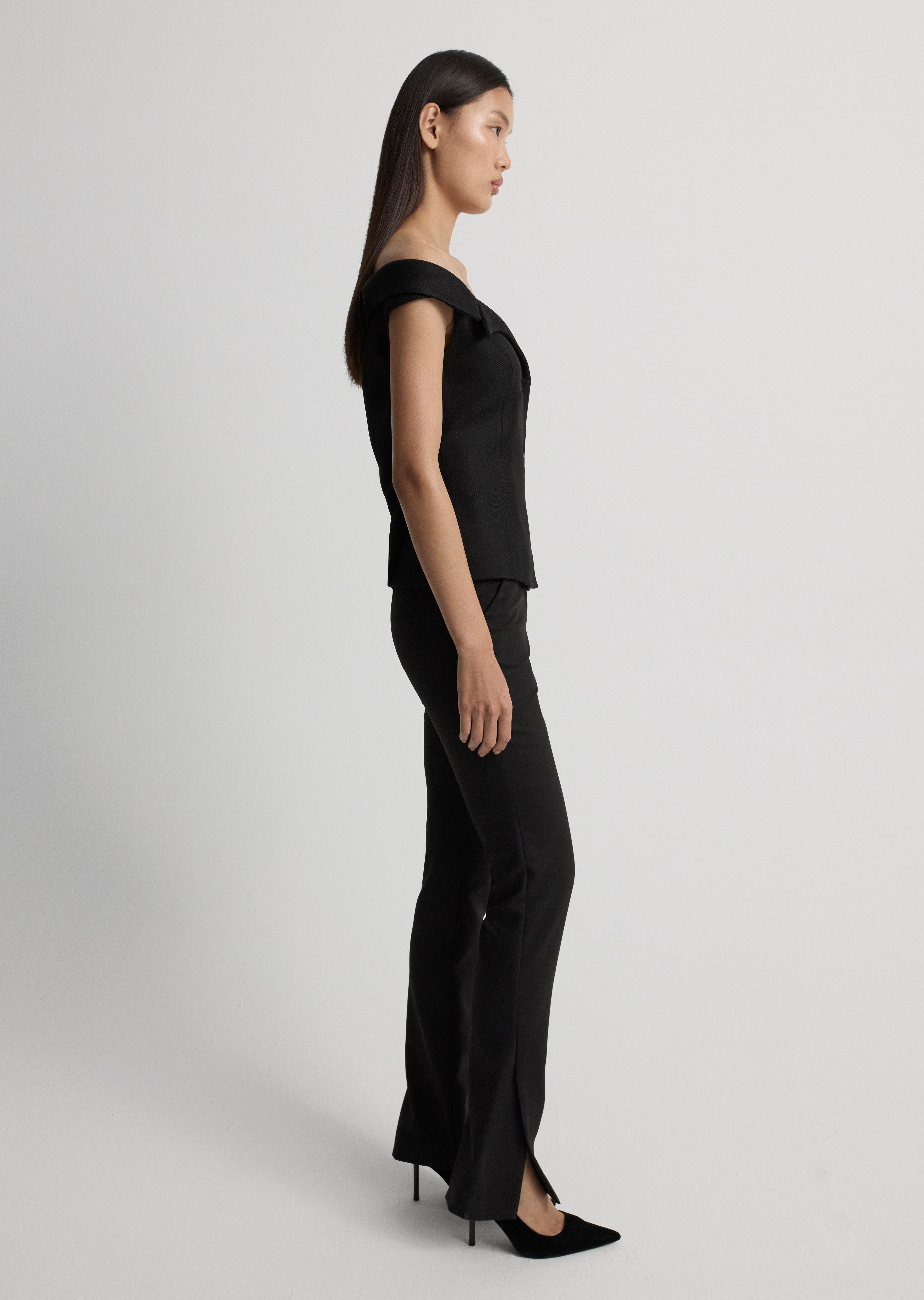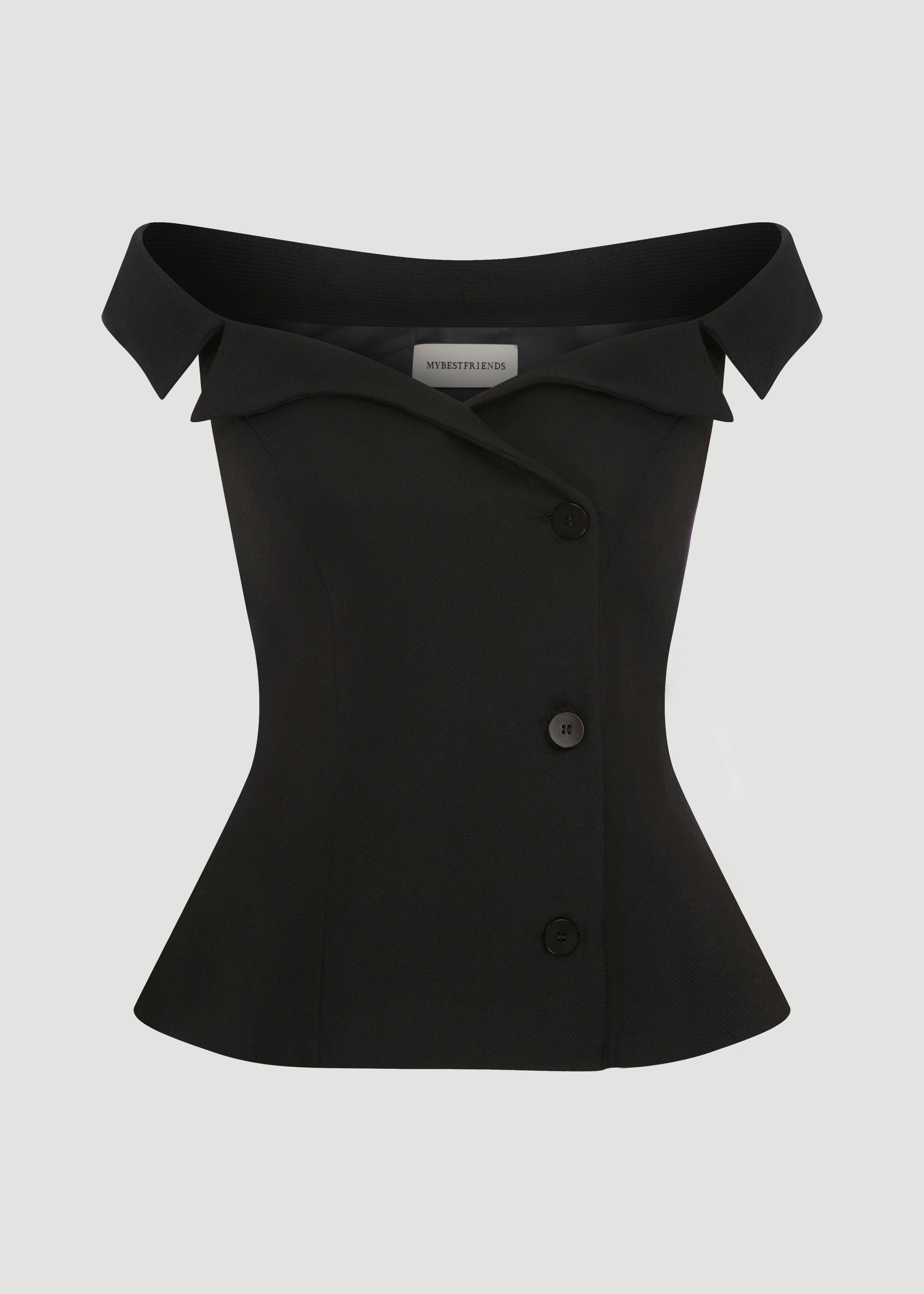 Prenses yakalı, düğme detaylı, bedene oturan yelek.