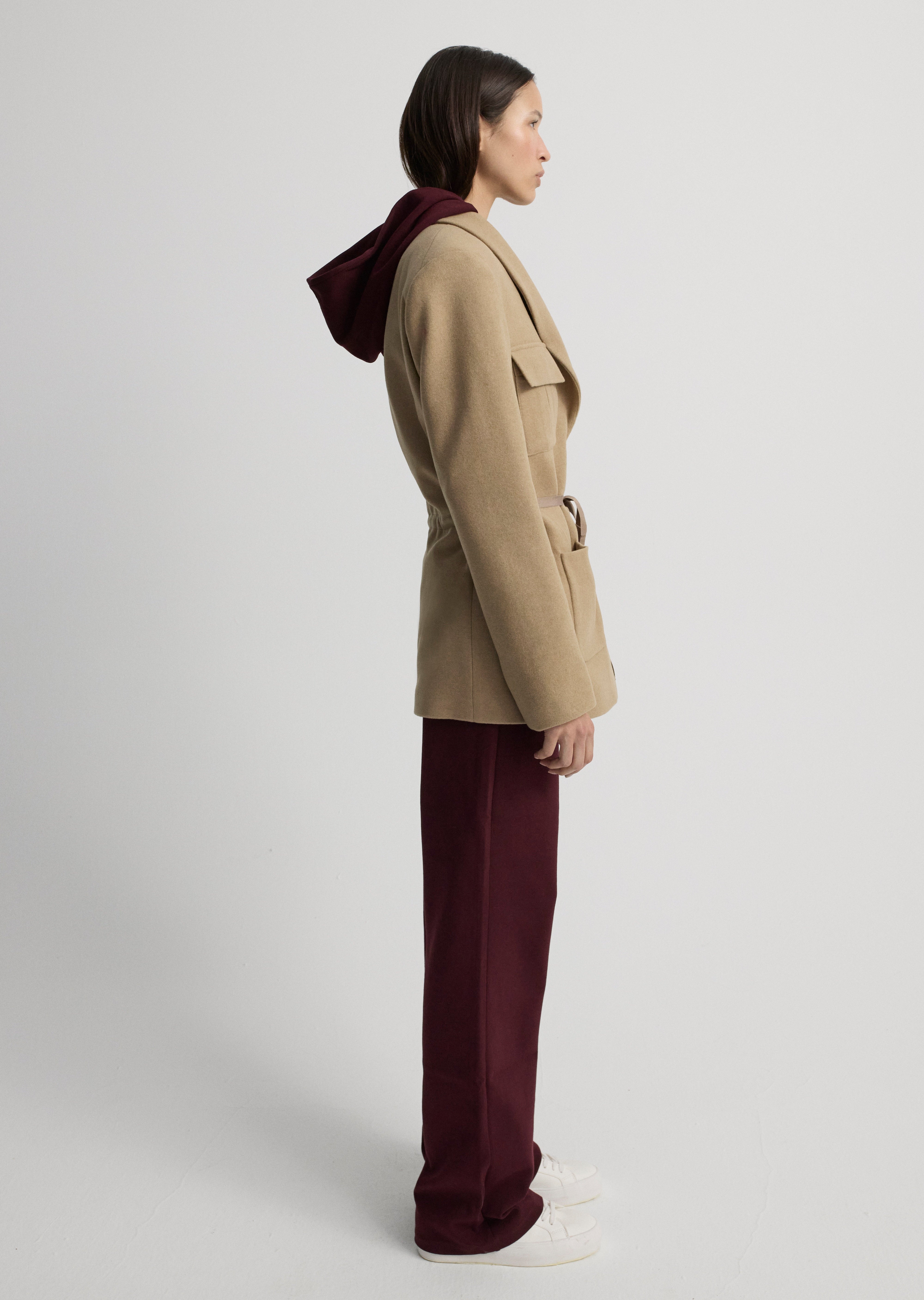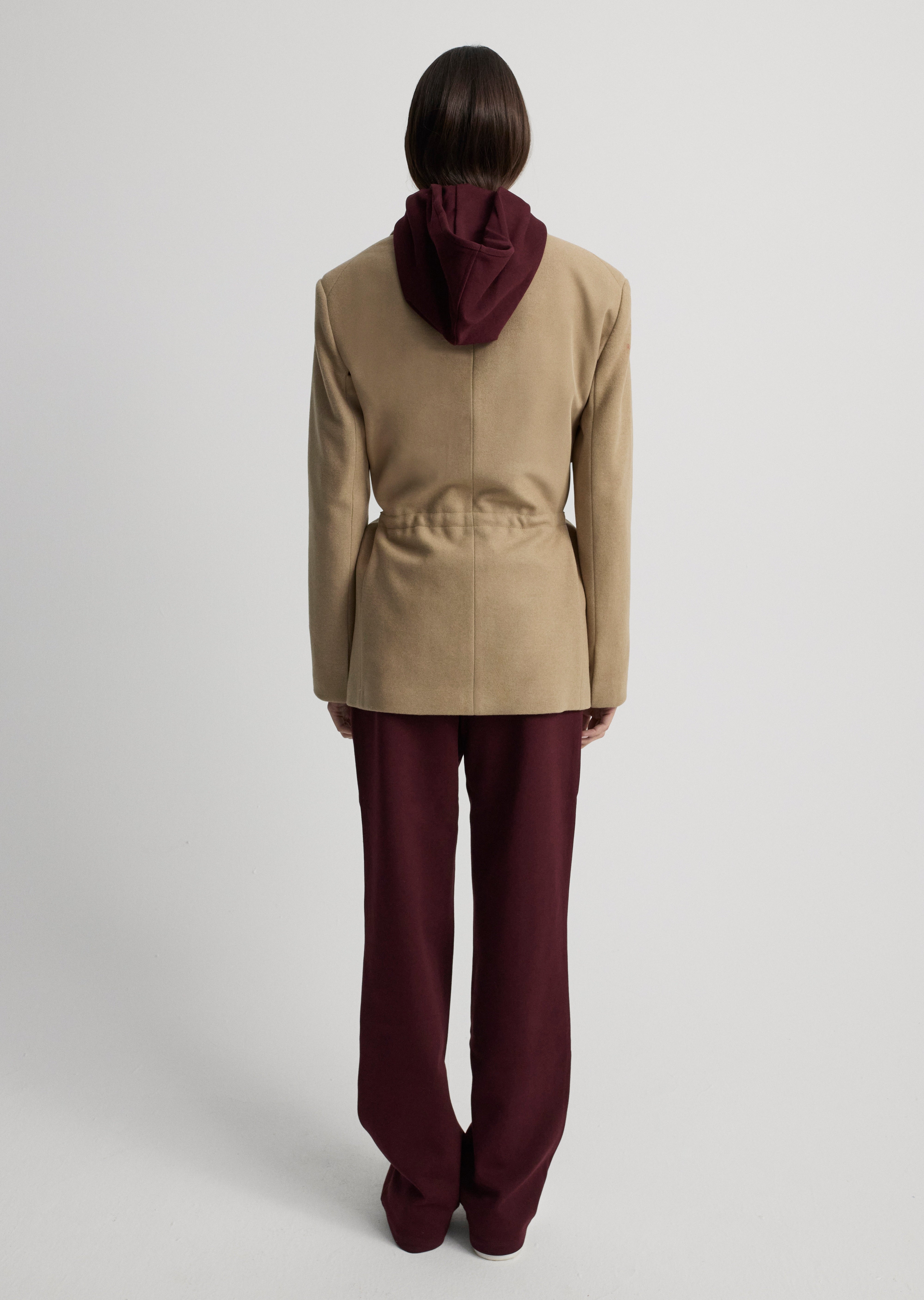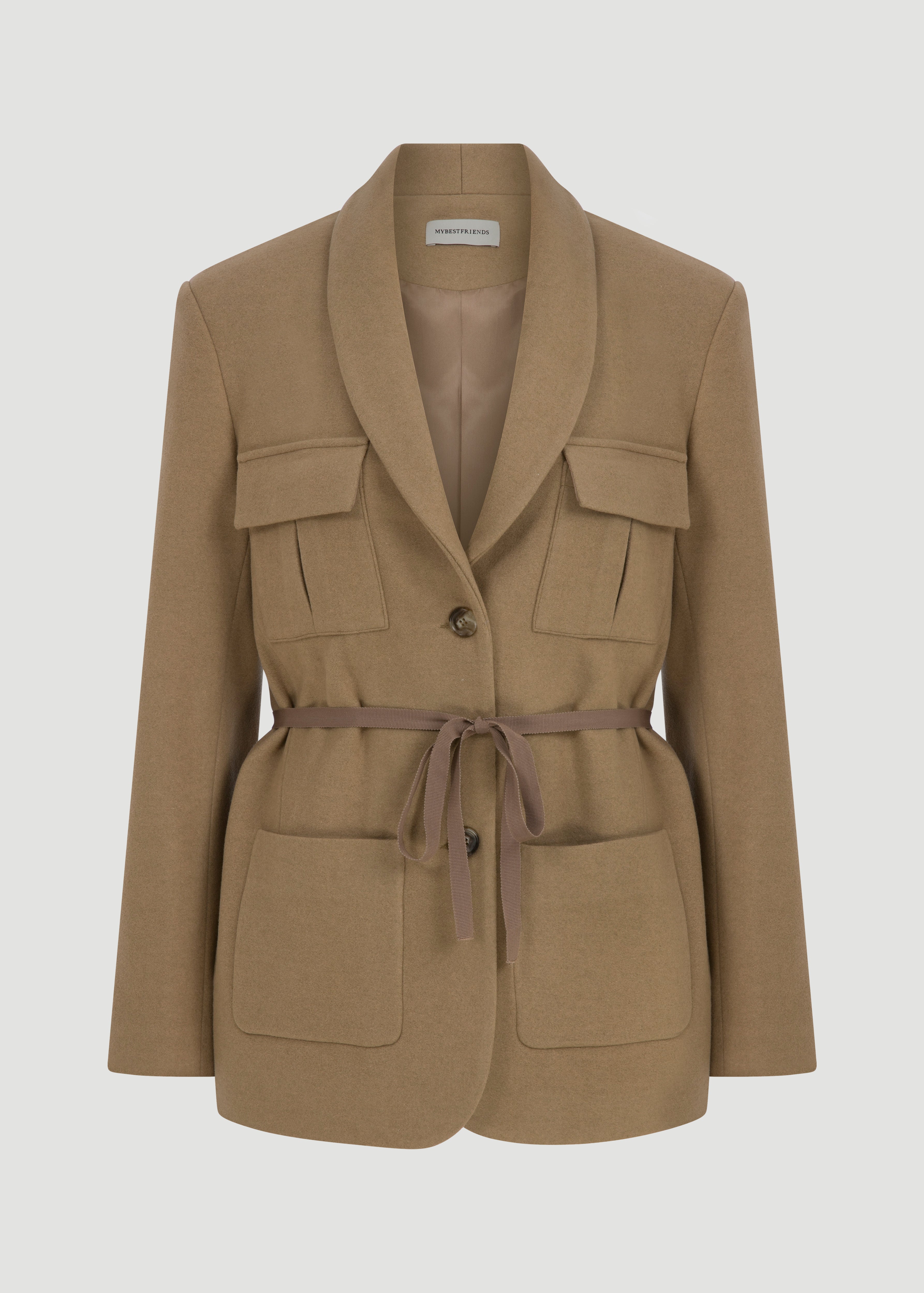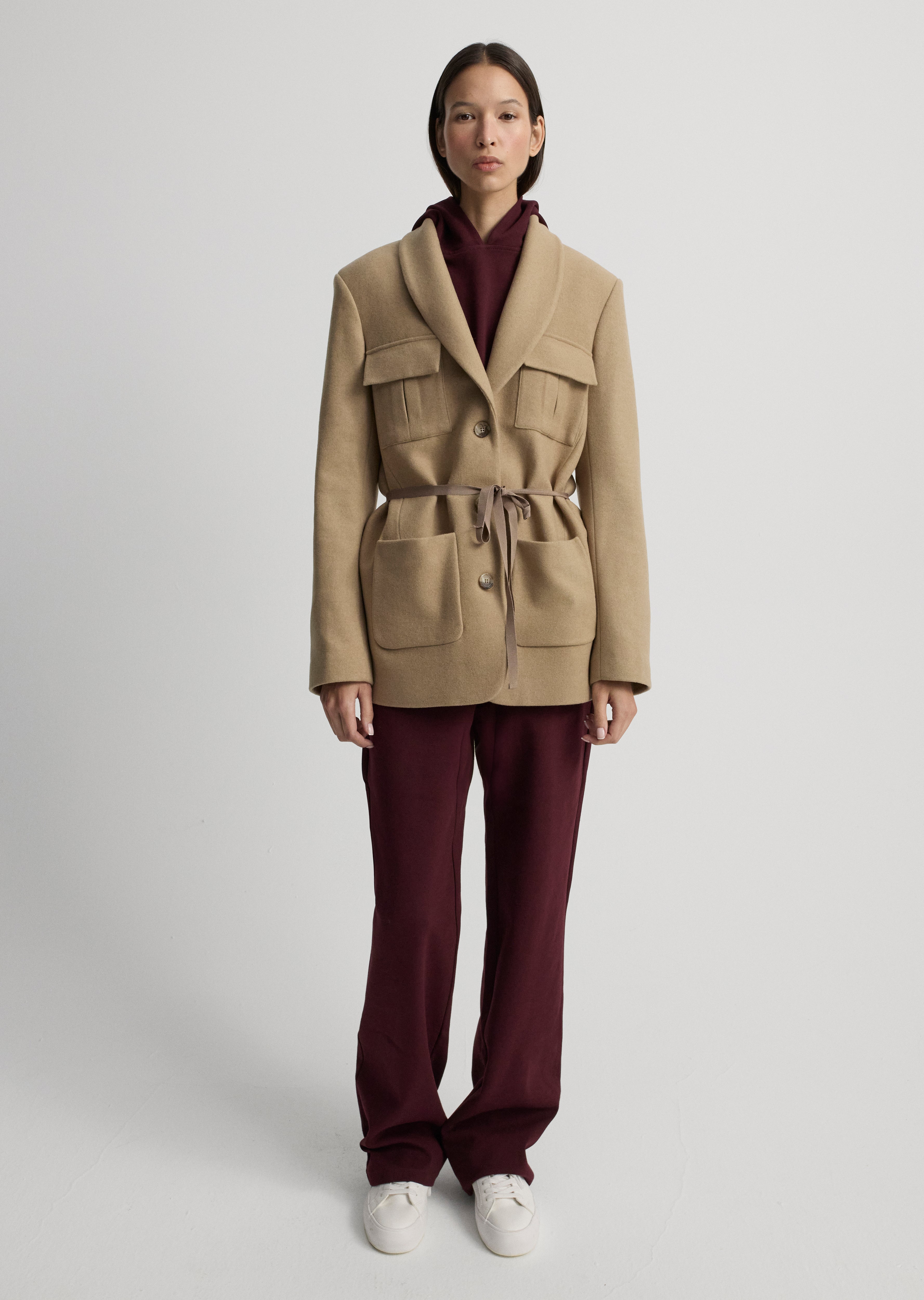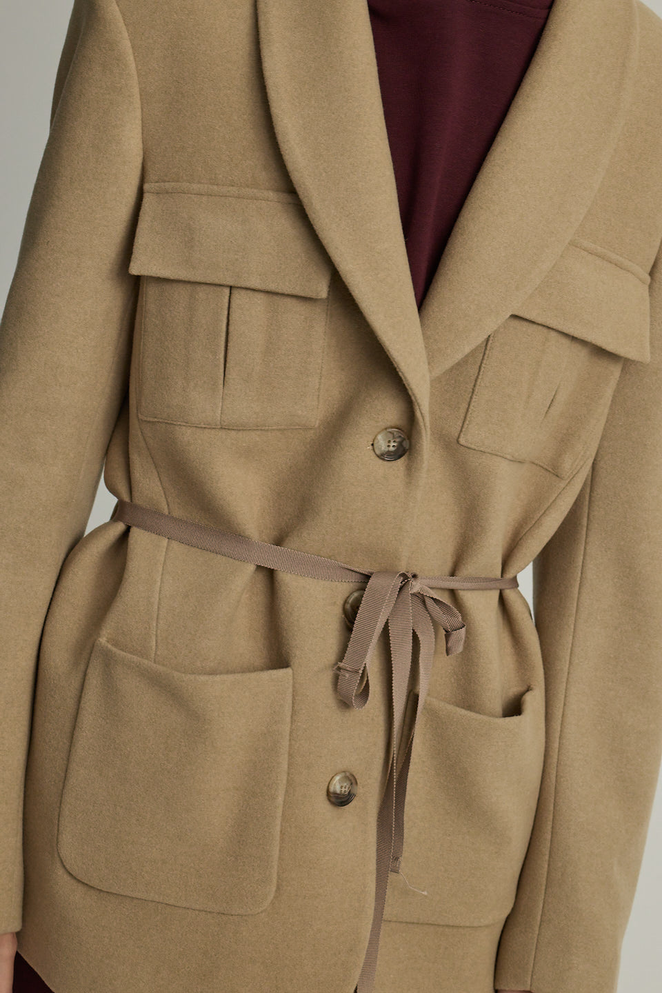 Cep ve grogren detaylı, şal yakalı ceket.