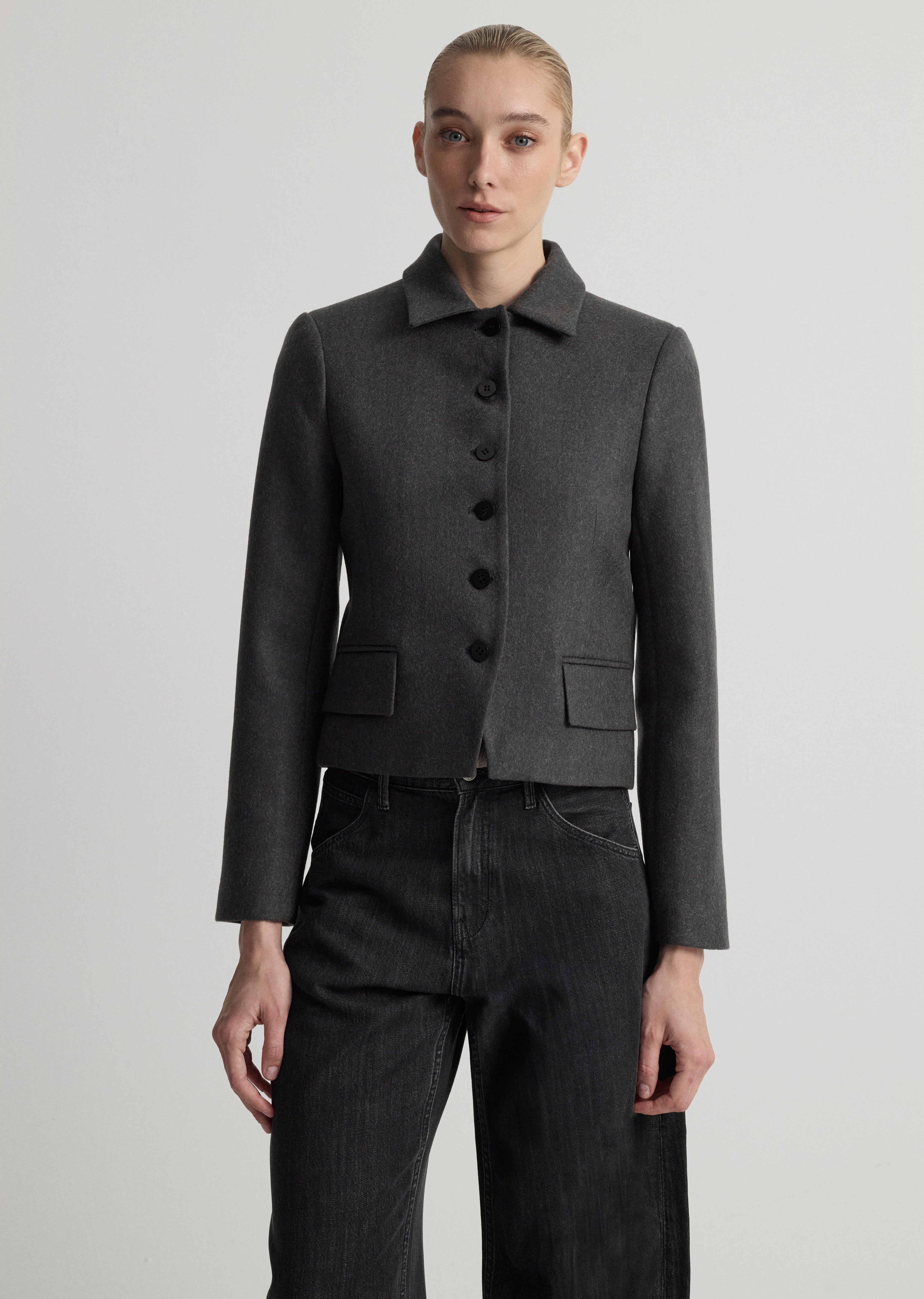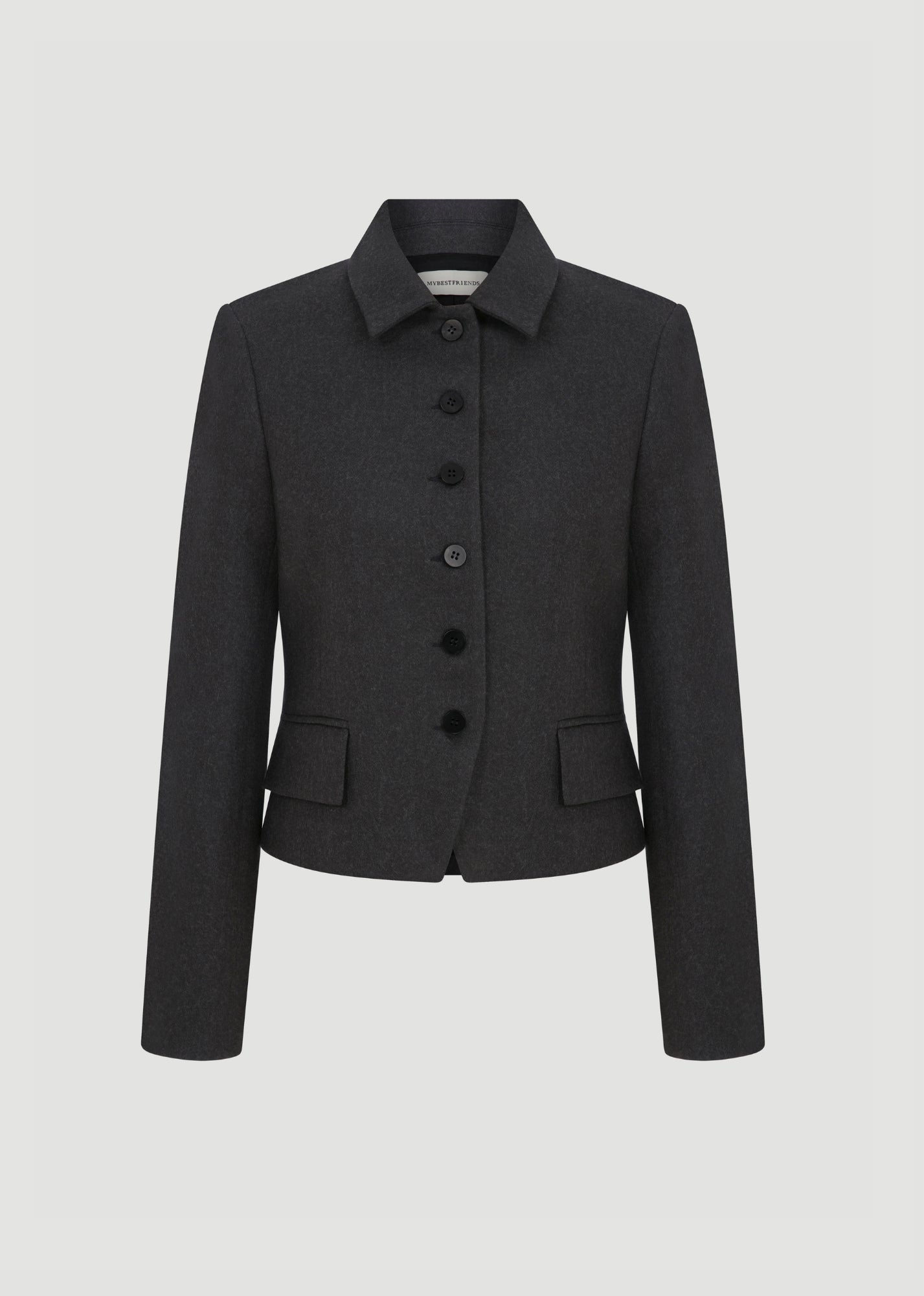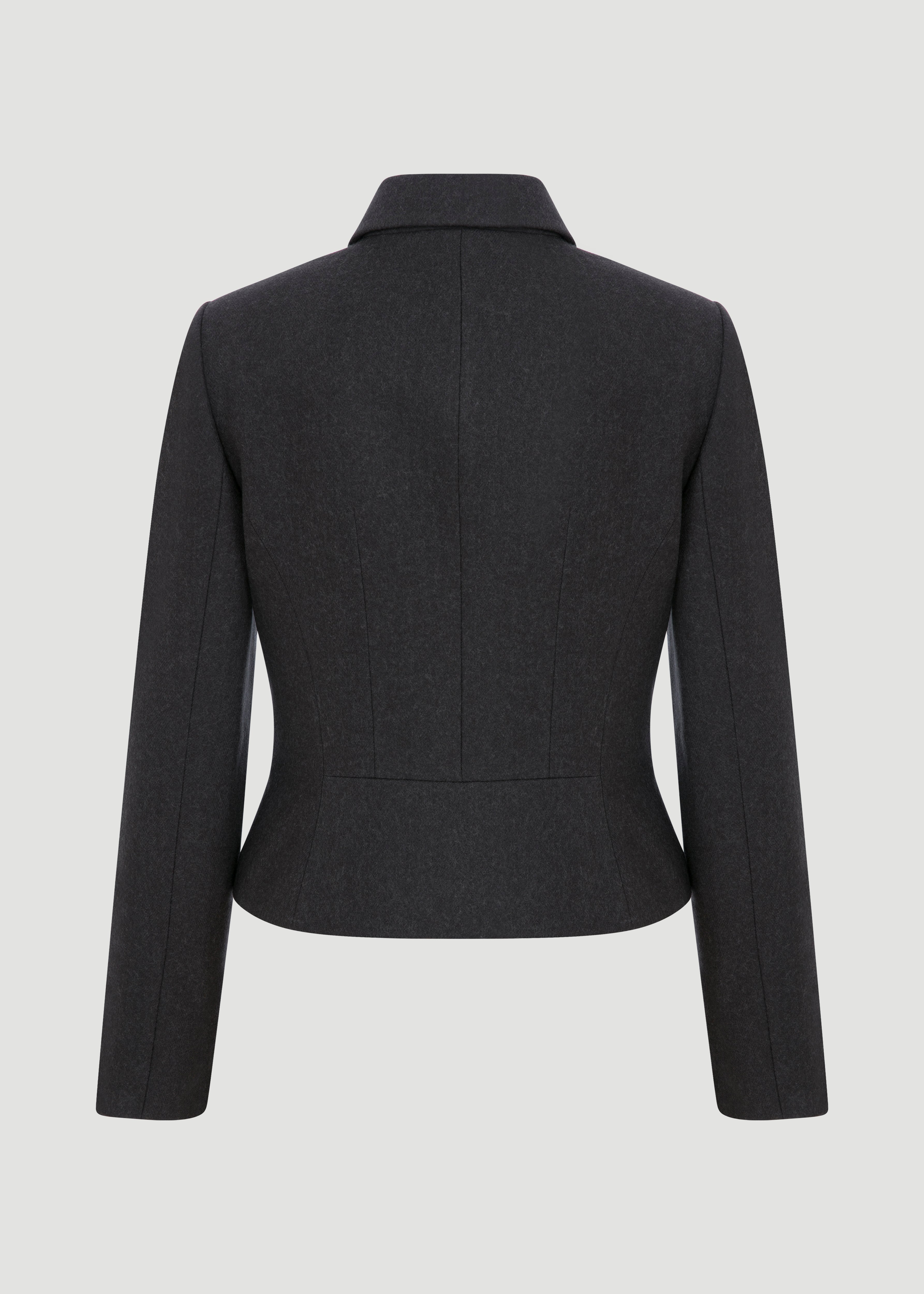 Düğme ve cep detaylı , üste oturan, kısa blazer ceket.