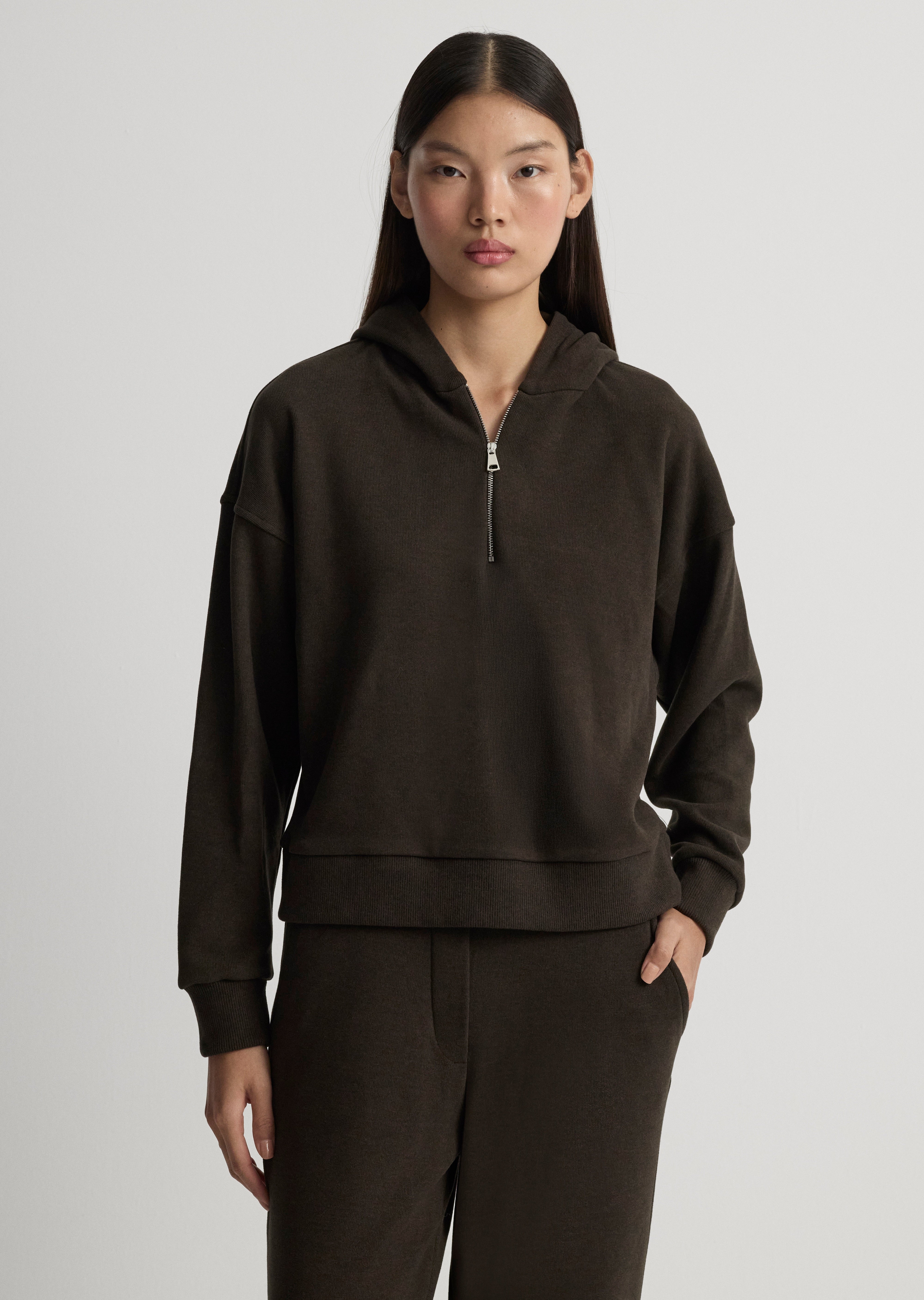 Fermuar detaylı, kapüşonlu sweatshirt.