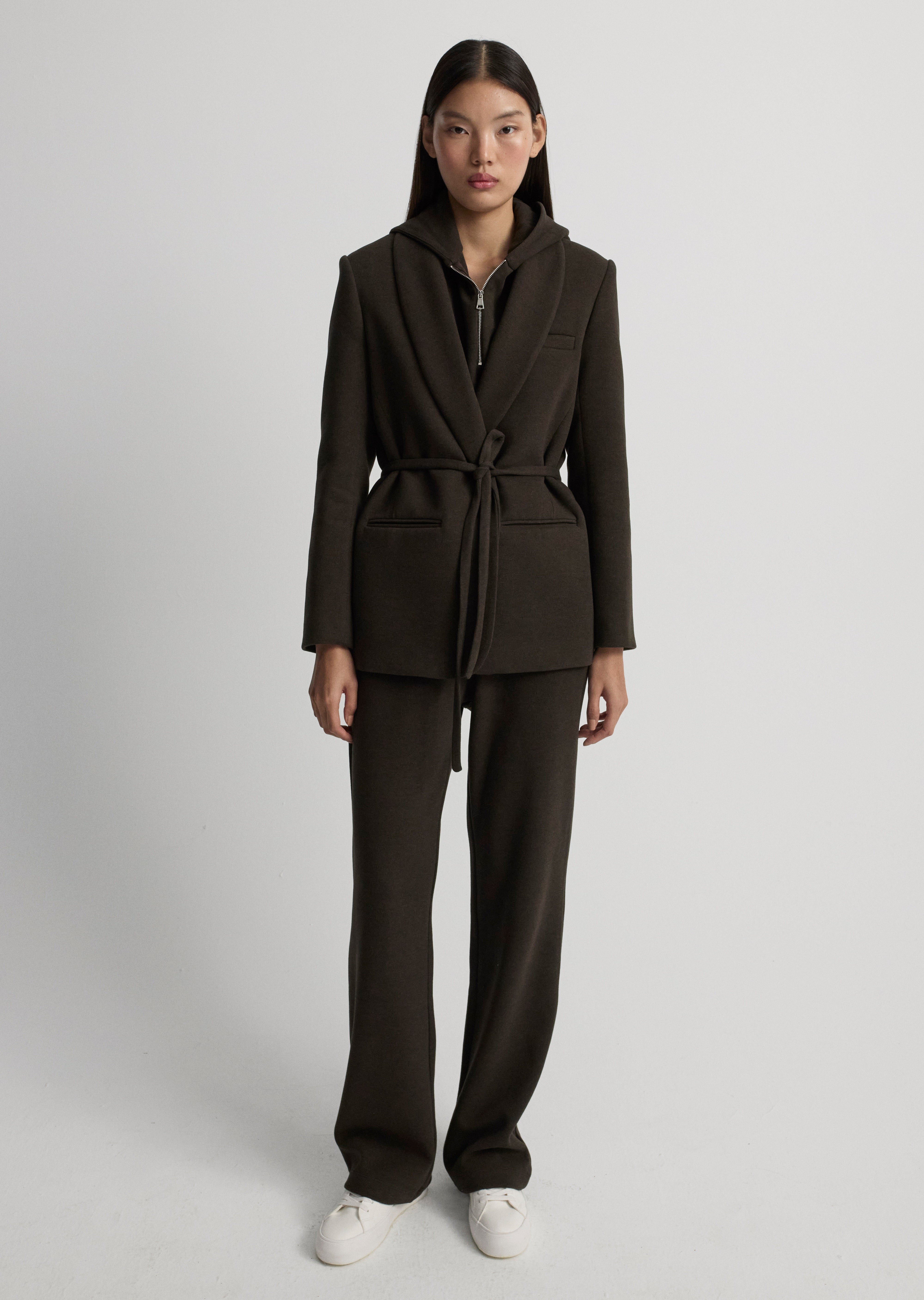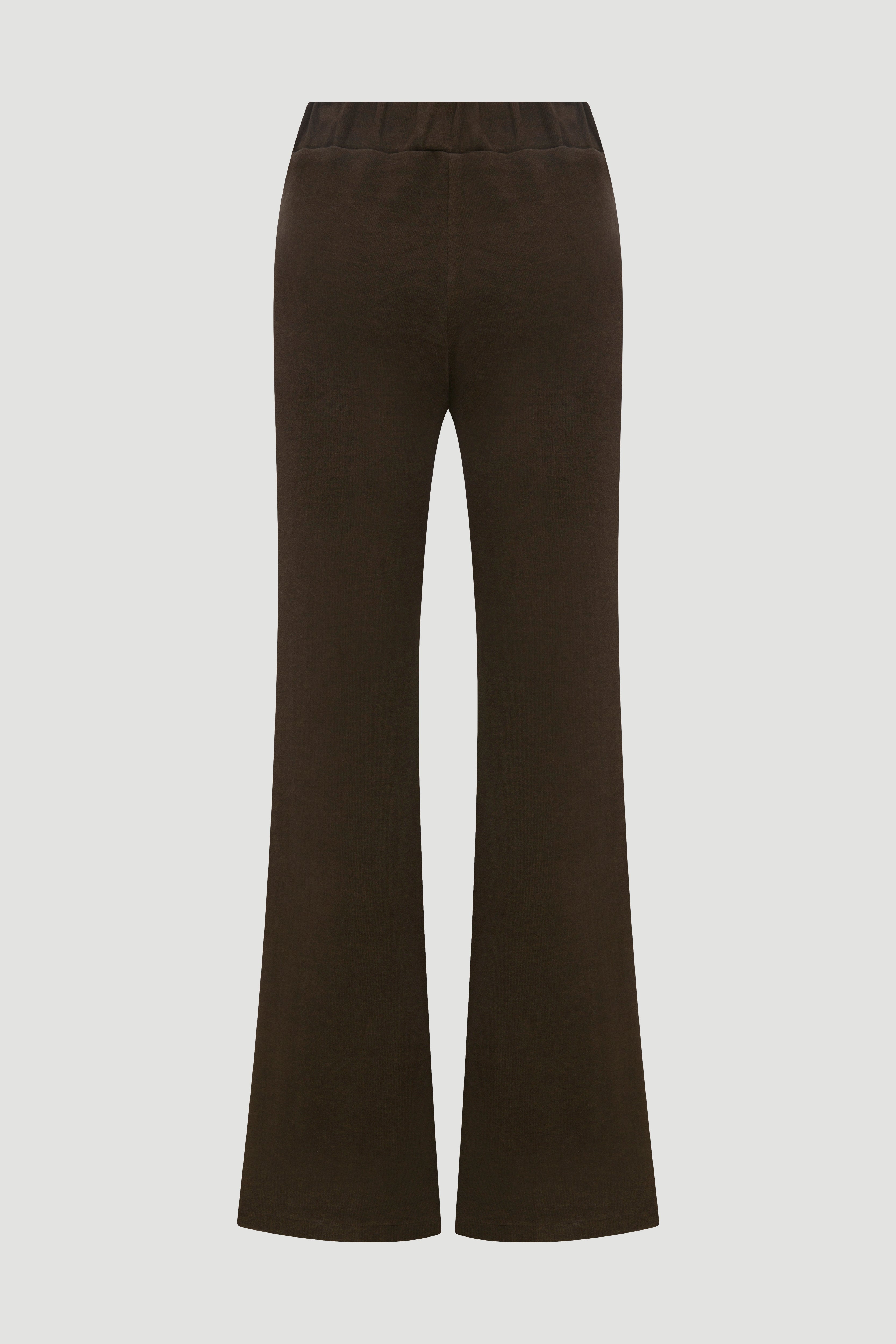 Yüksek belli, beli lastikli, düz kesim pantolon.