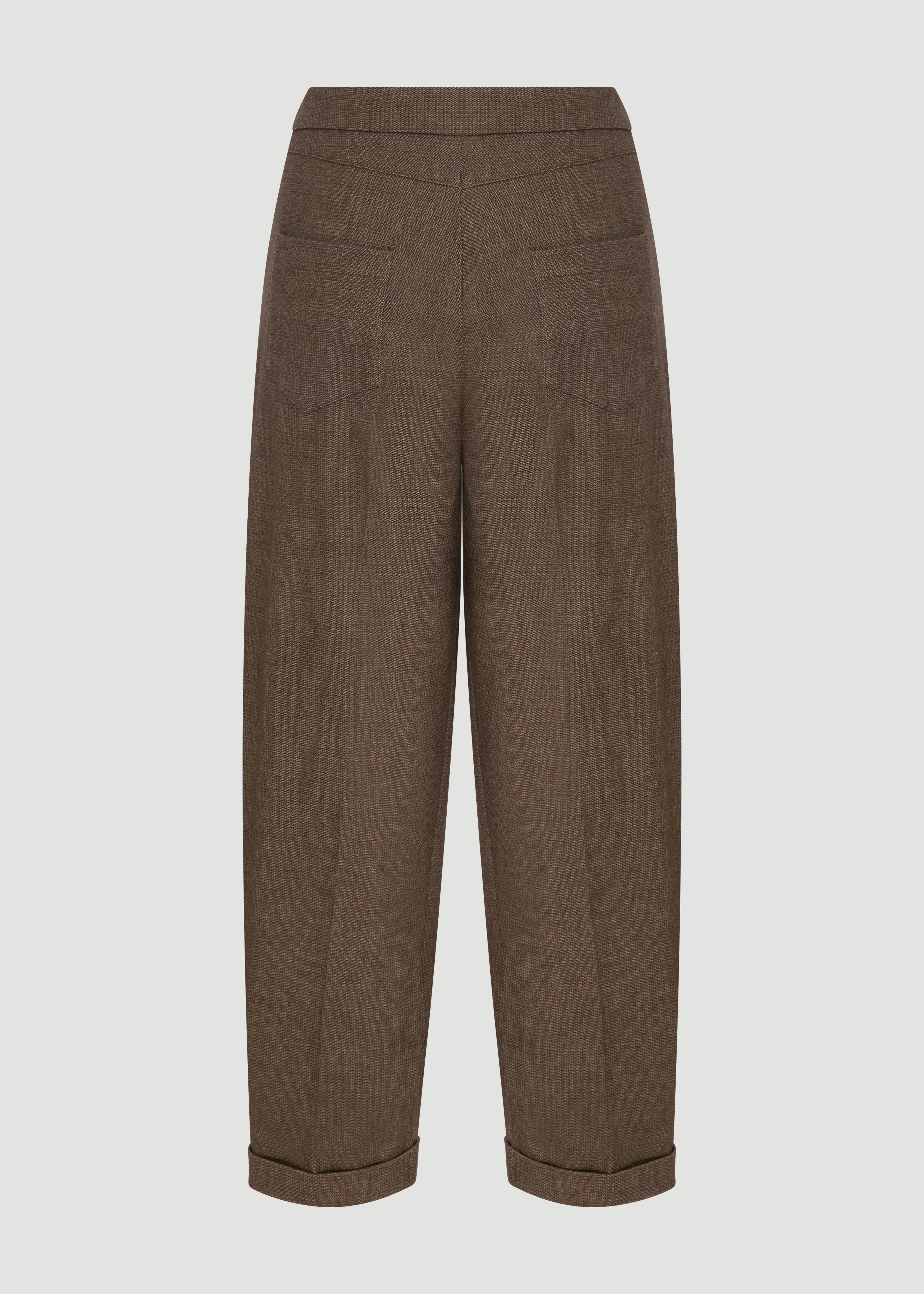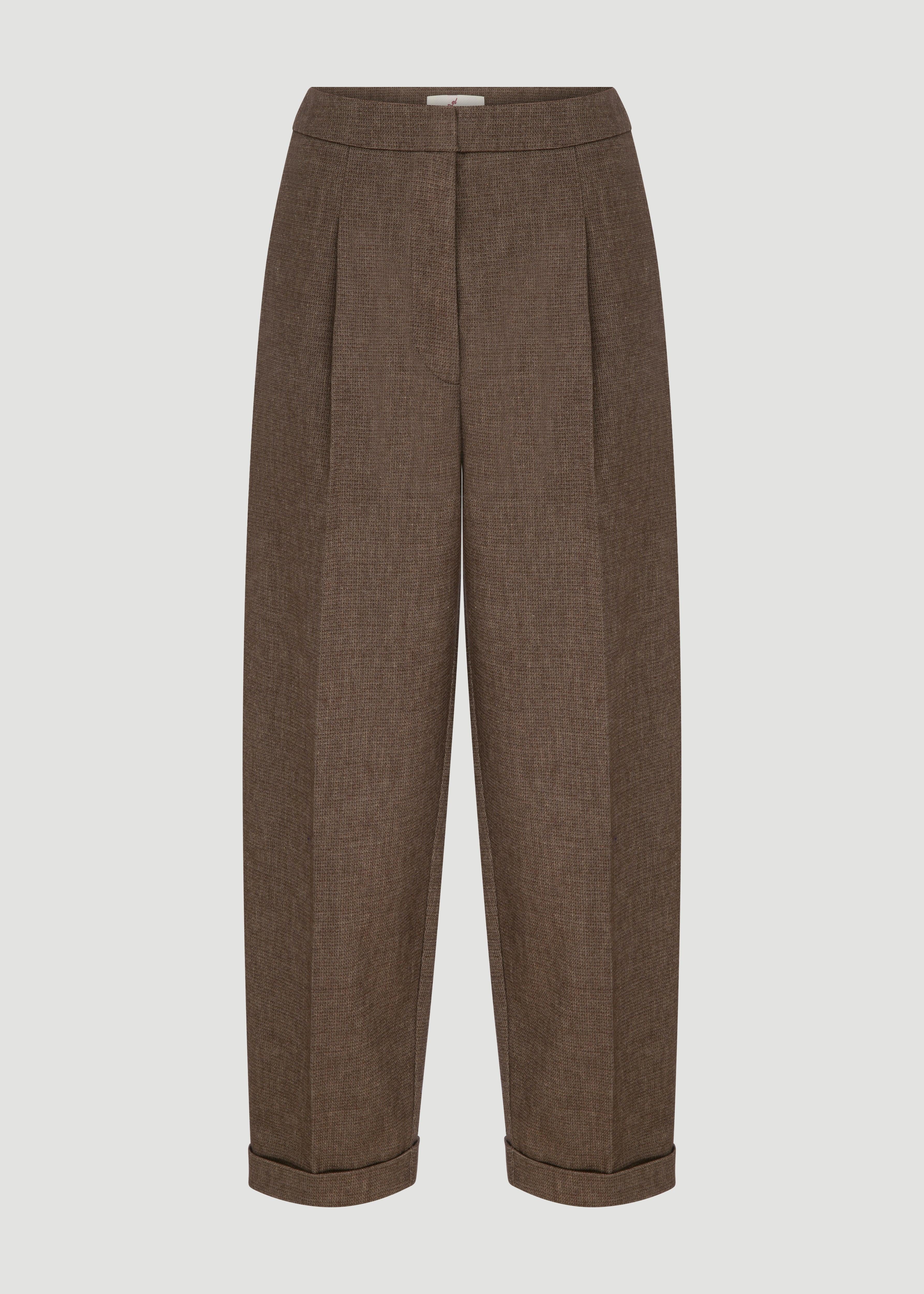 Orta belli, pile detaylı, paça kıvrımlı pantolon.