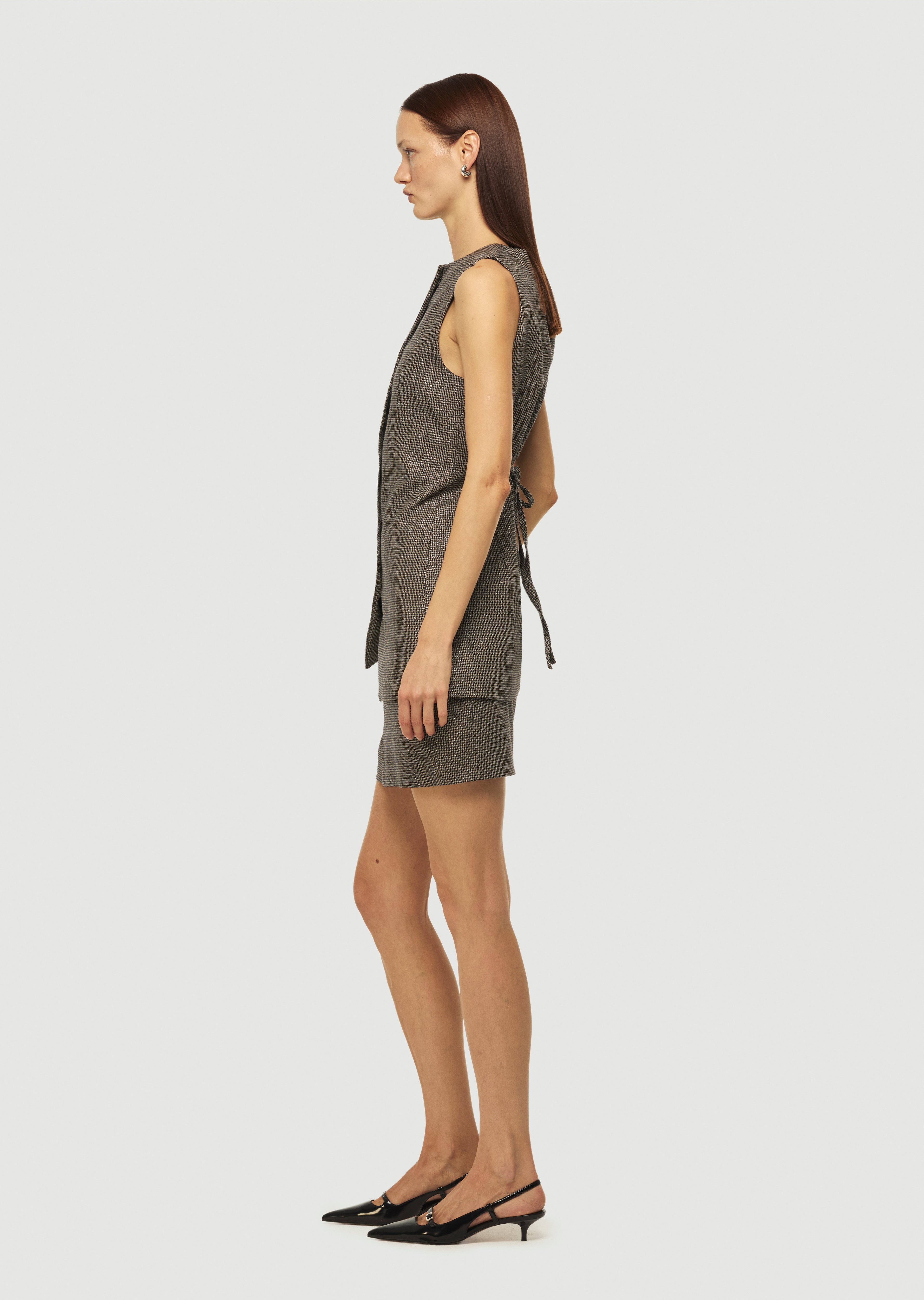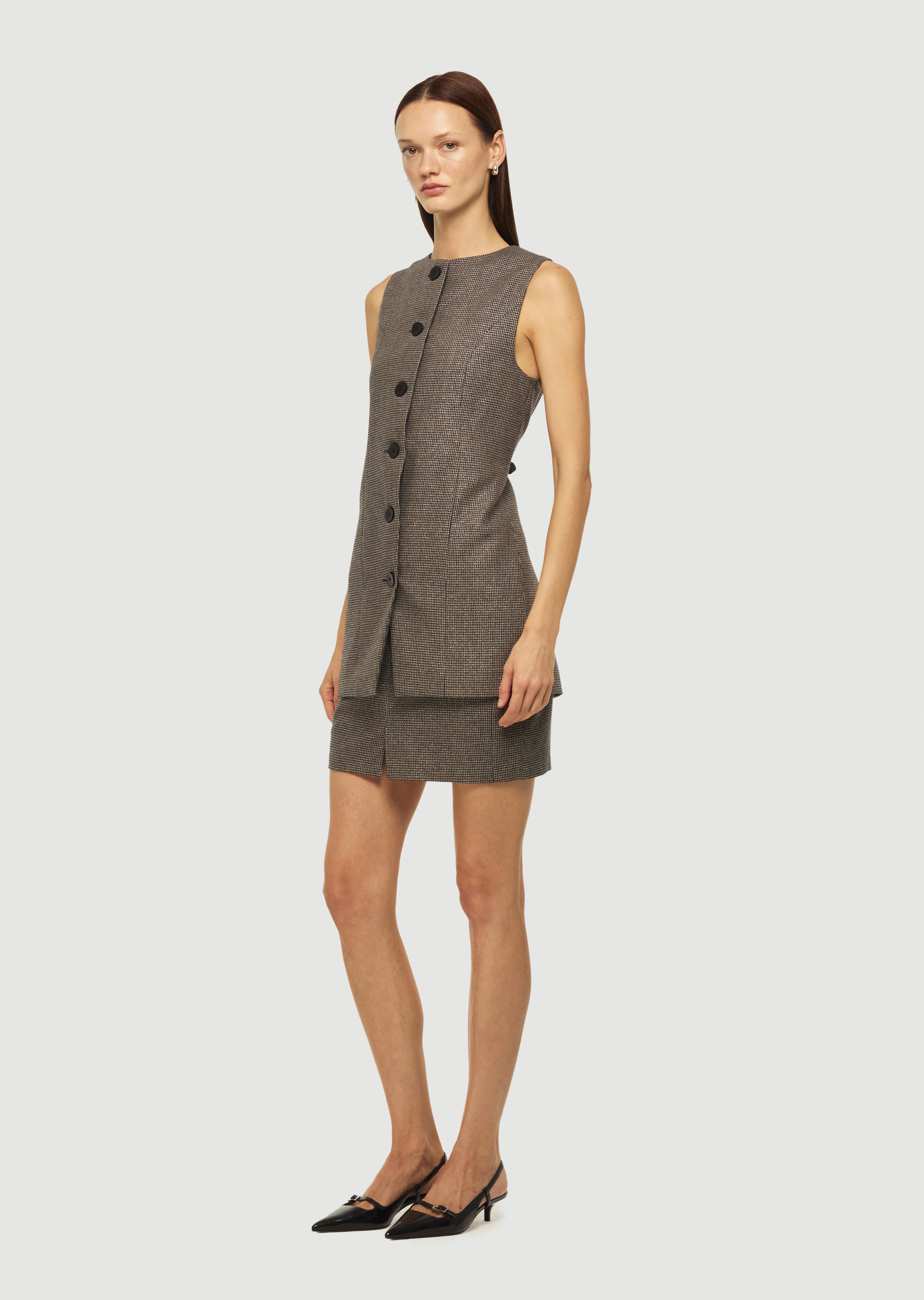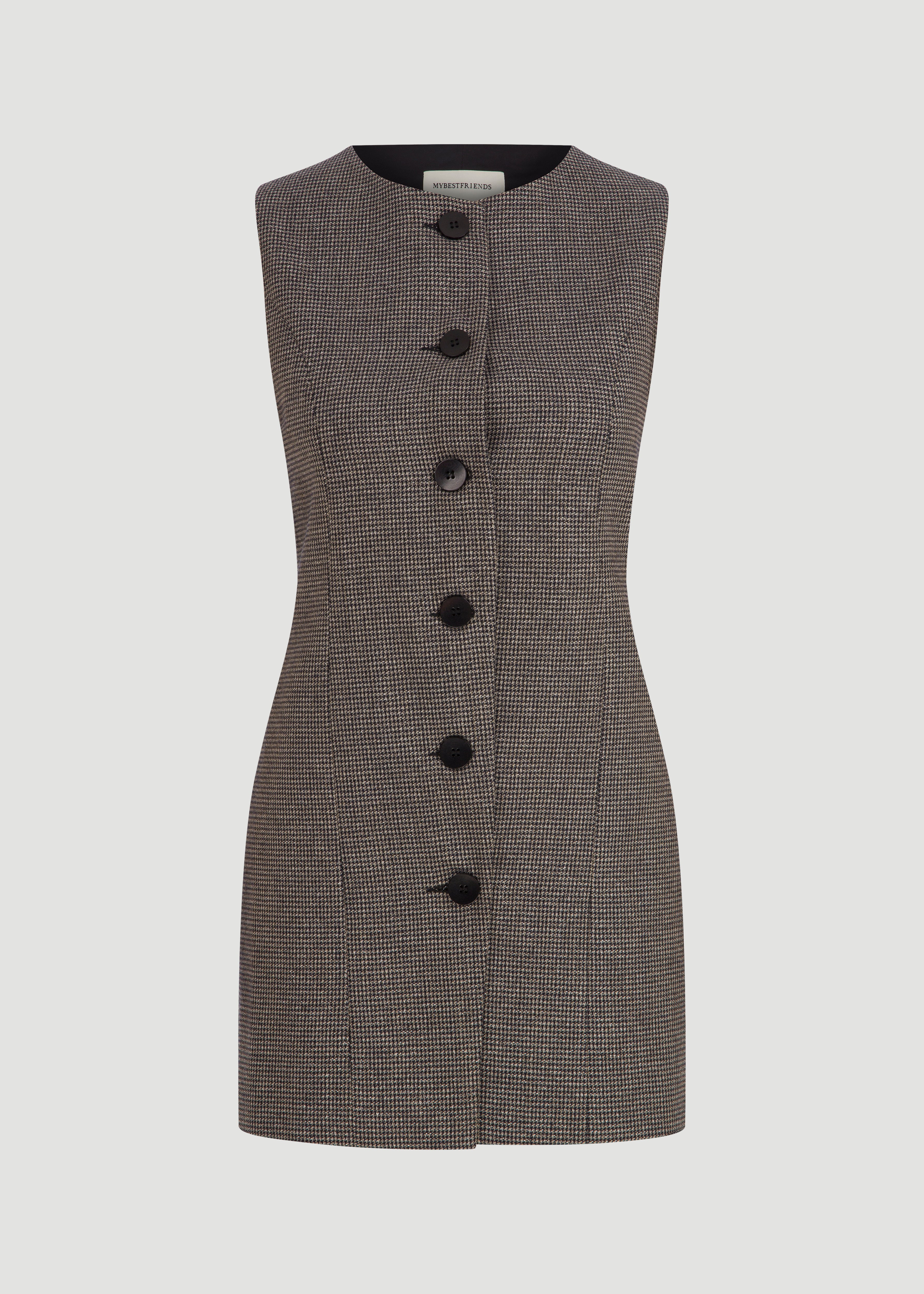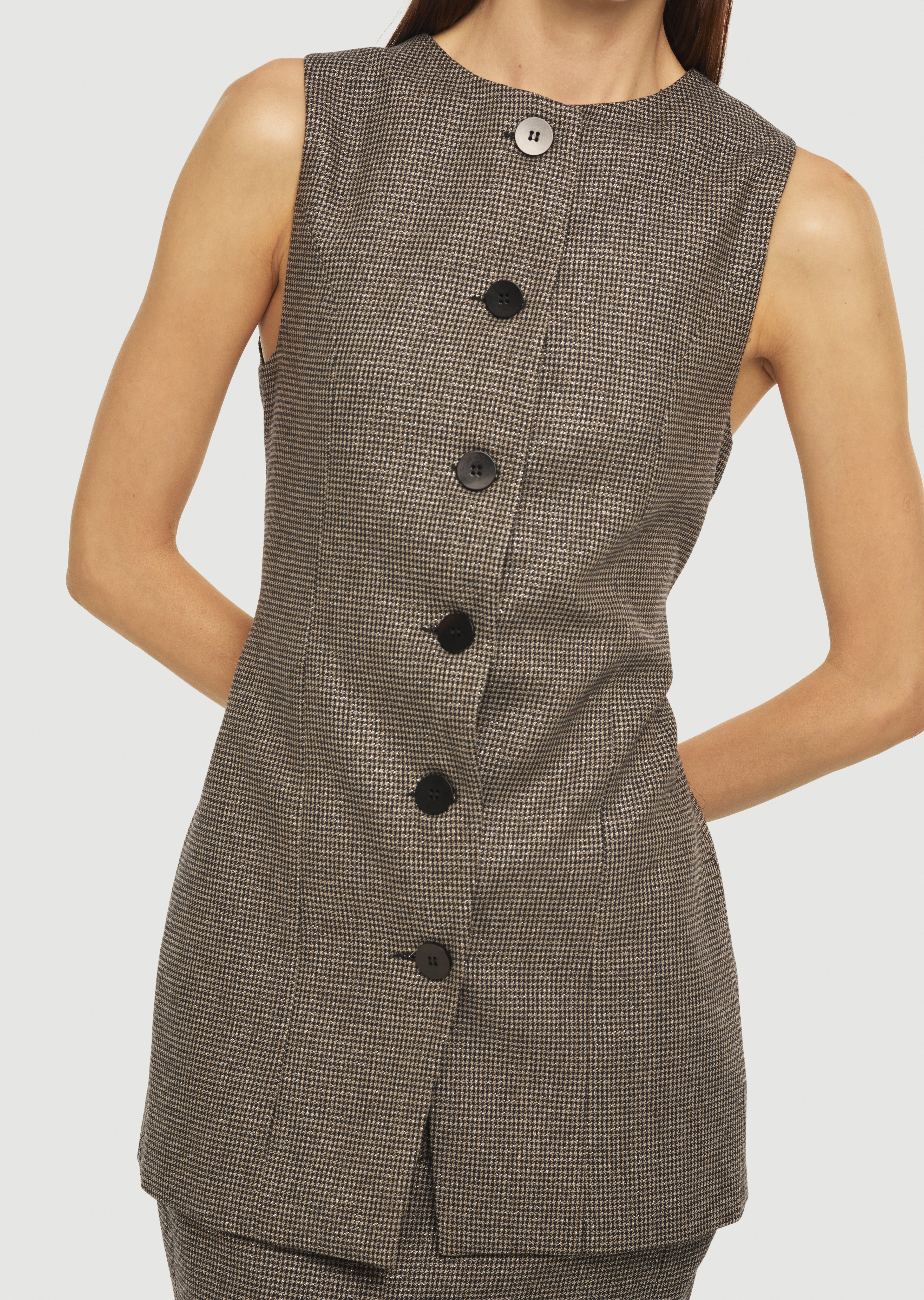 Bisiklet yaka, düğme detaylı, kolsuz yelek.