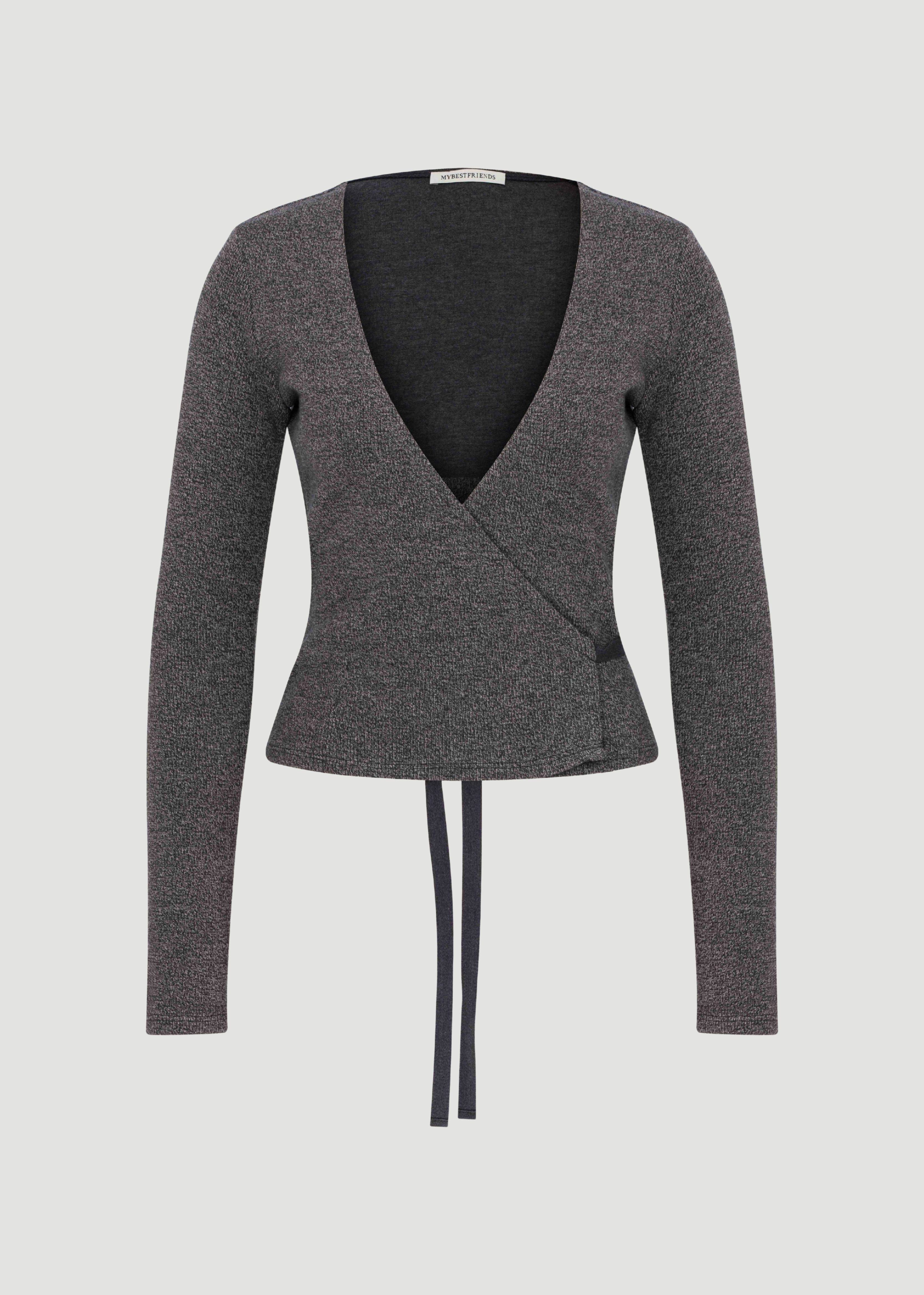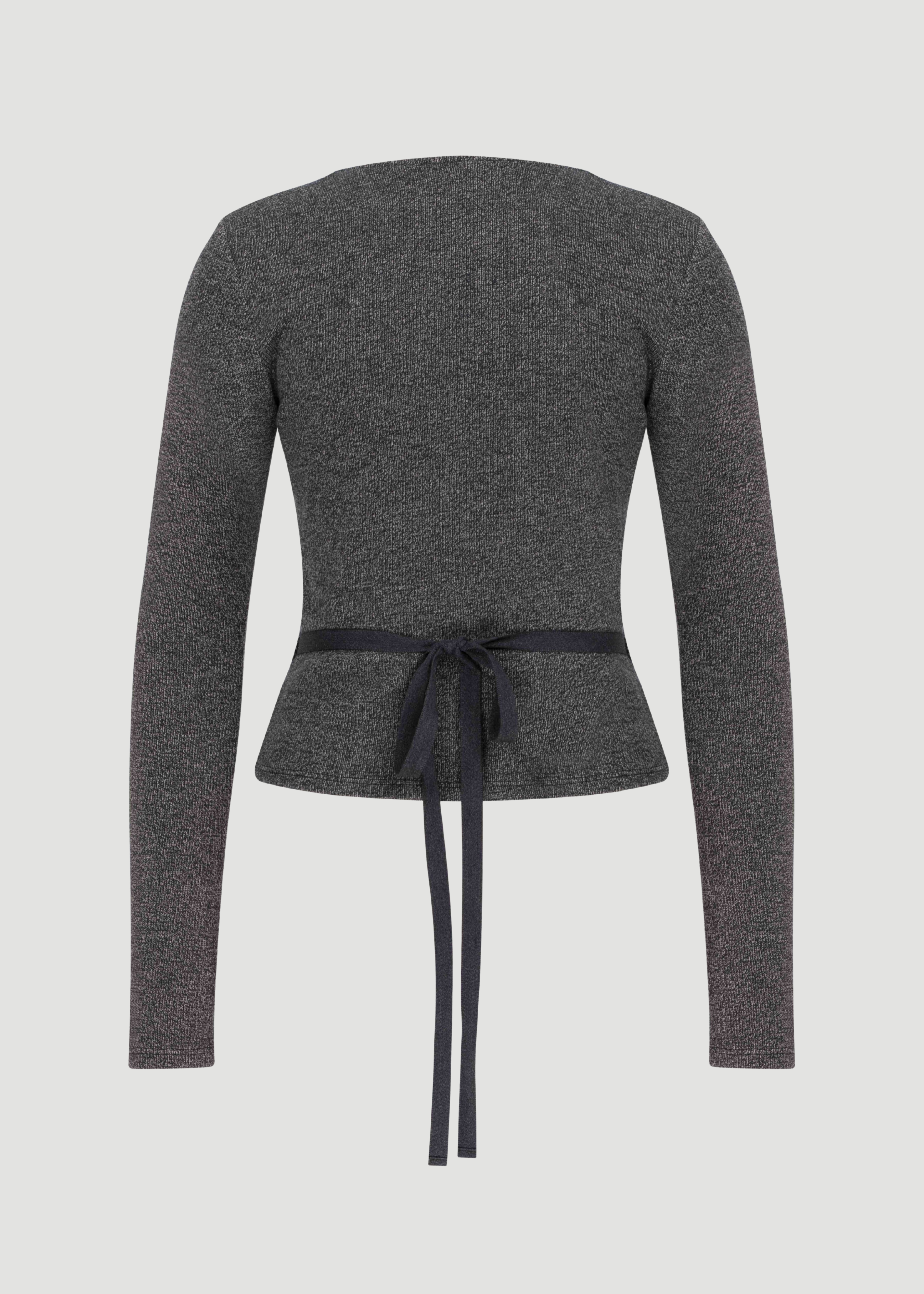 Kruvaze kesim, ip detaylı, uzun kollu hırka.
