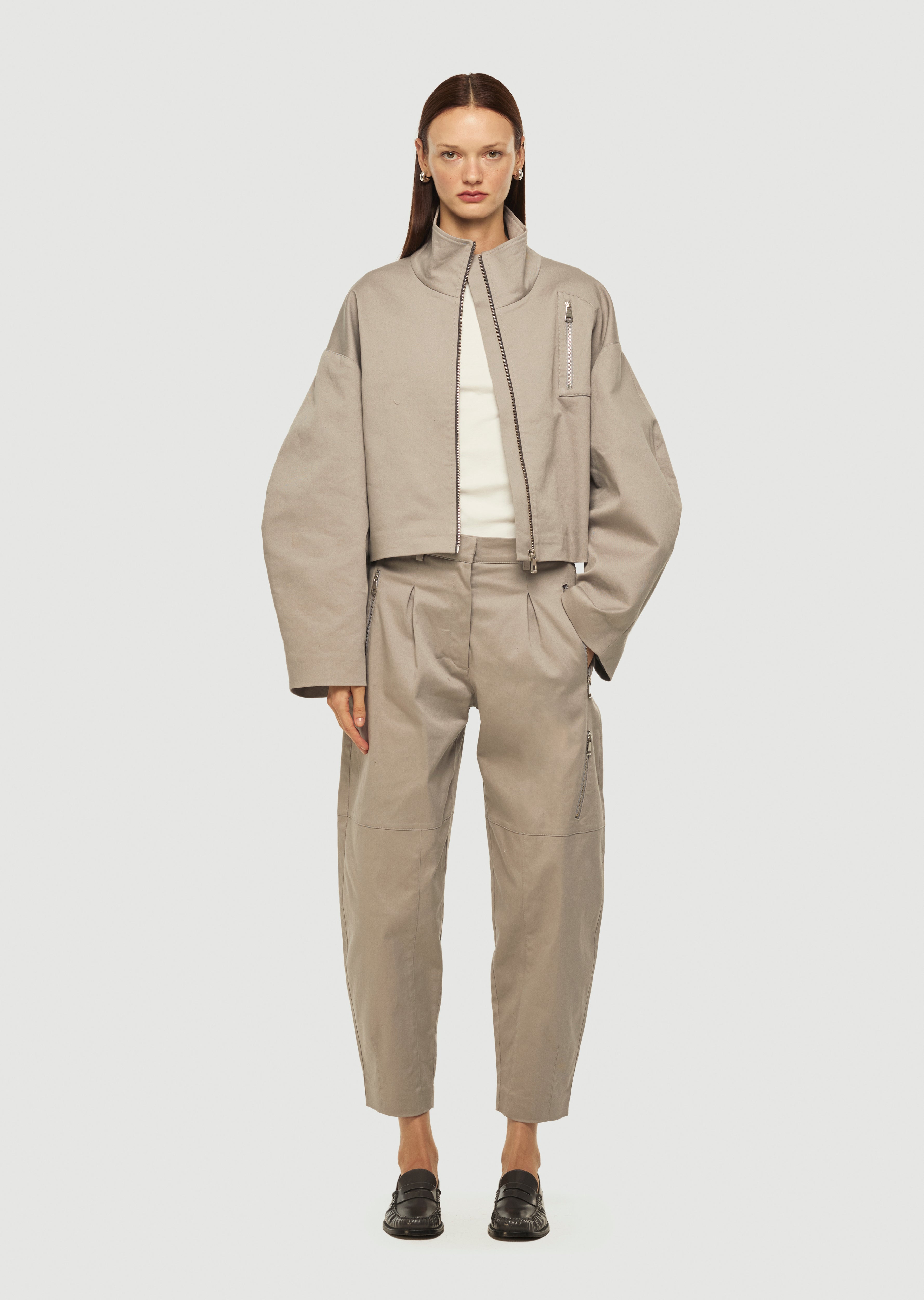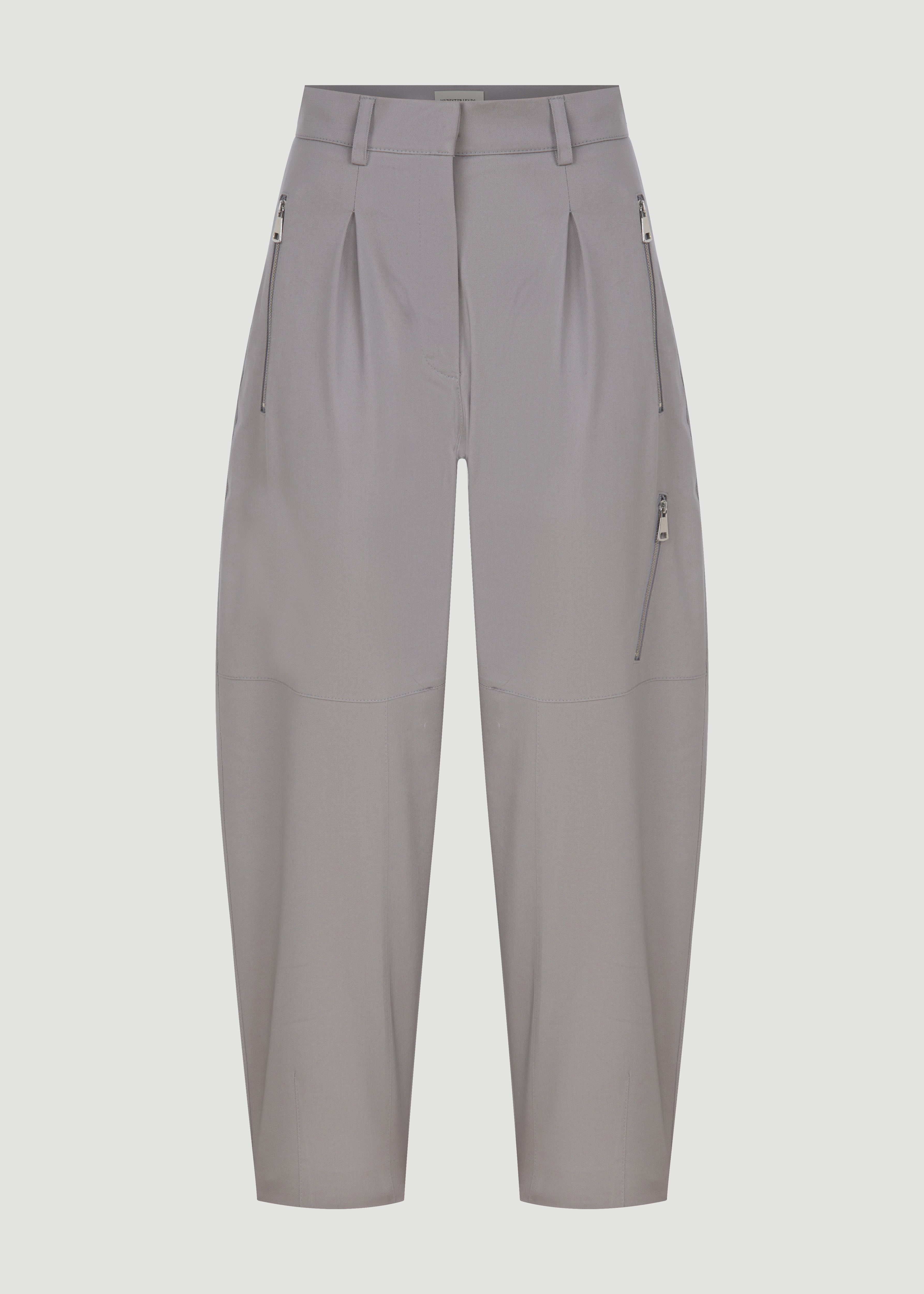 Havuç kesim, metal fermuar detaylı pantolon.