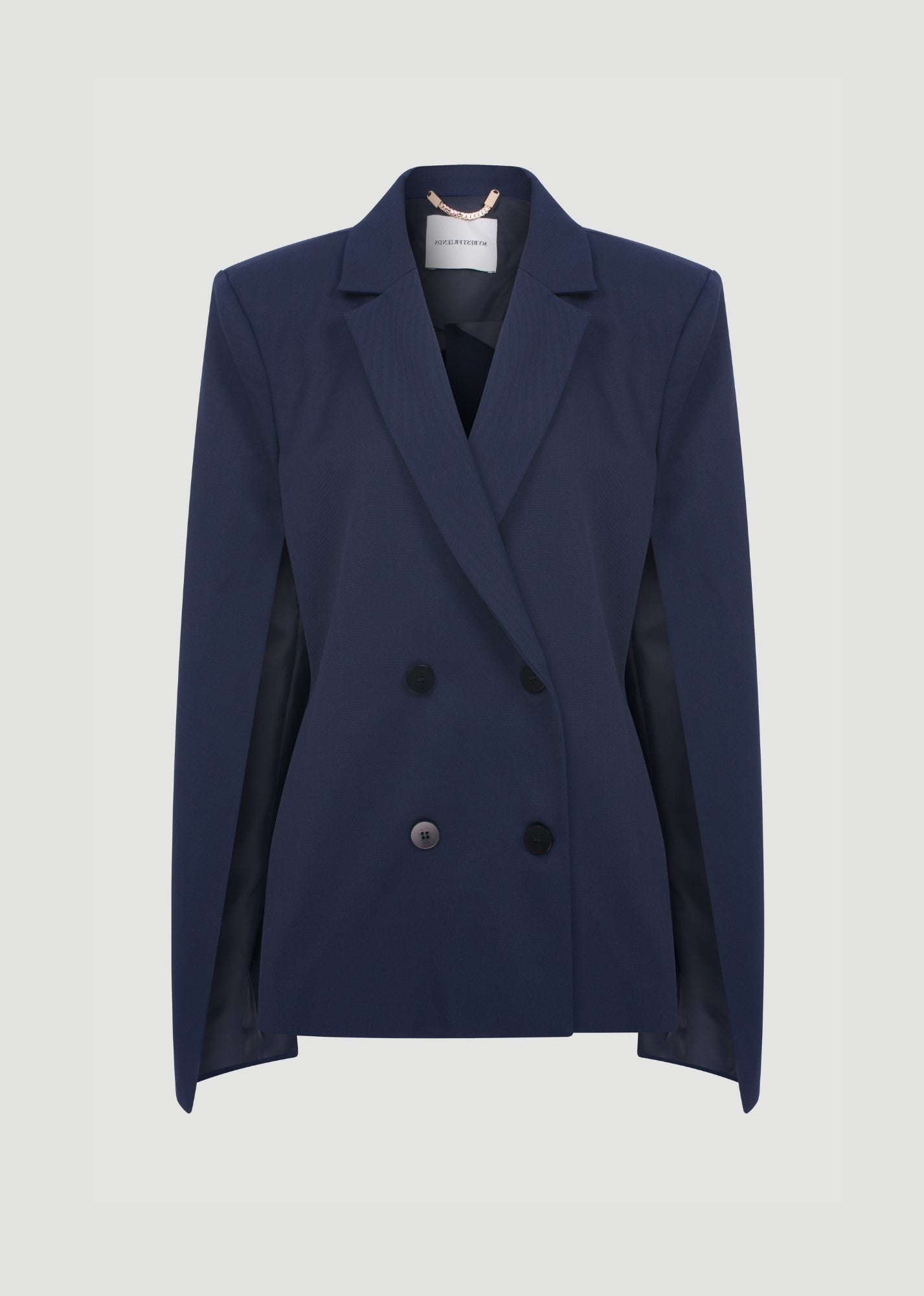 Dört düğmeli, kolları yırtmaçlı blazer ceket.