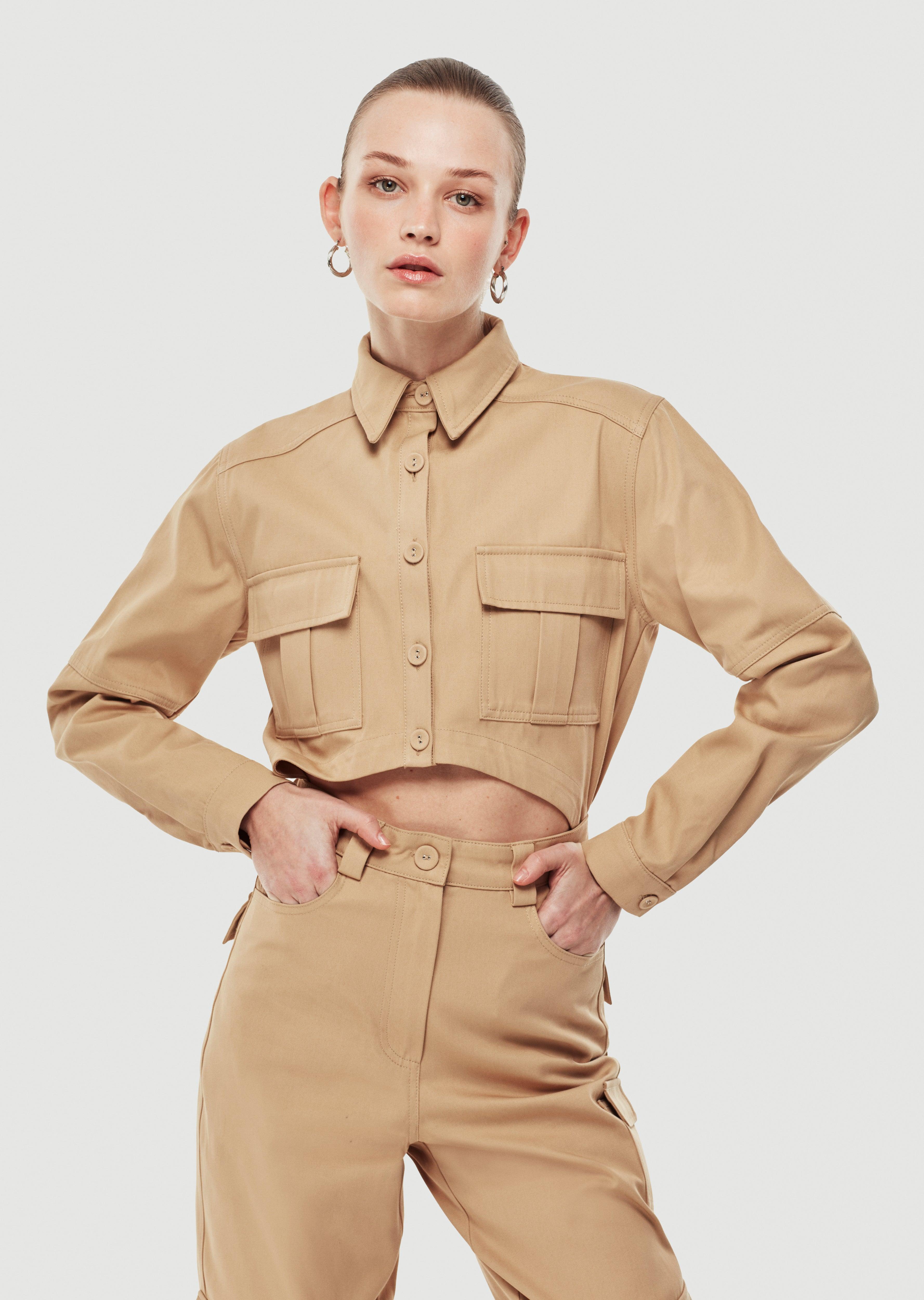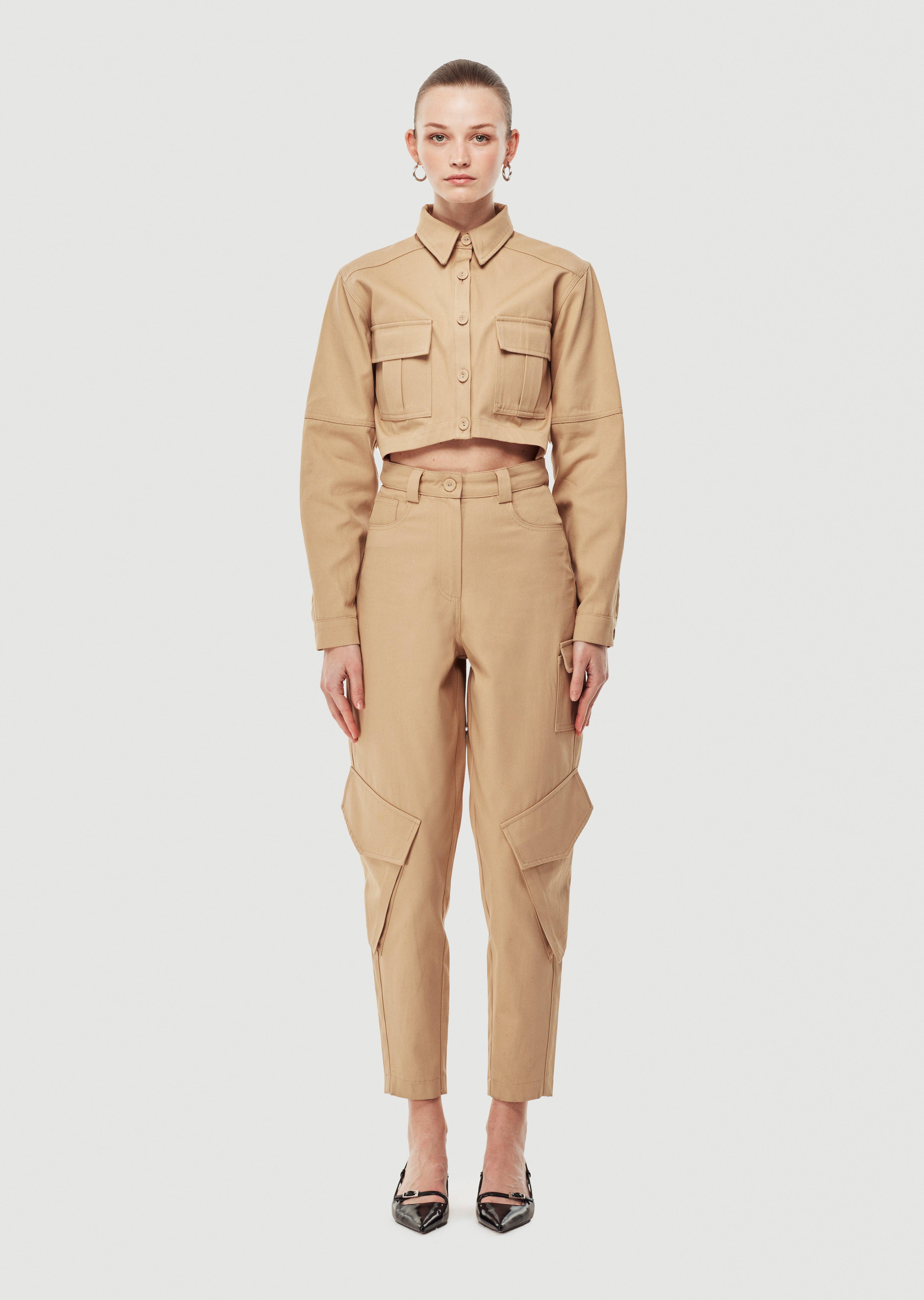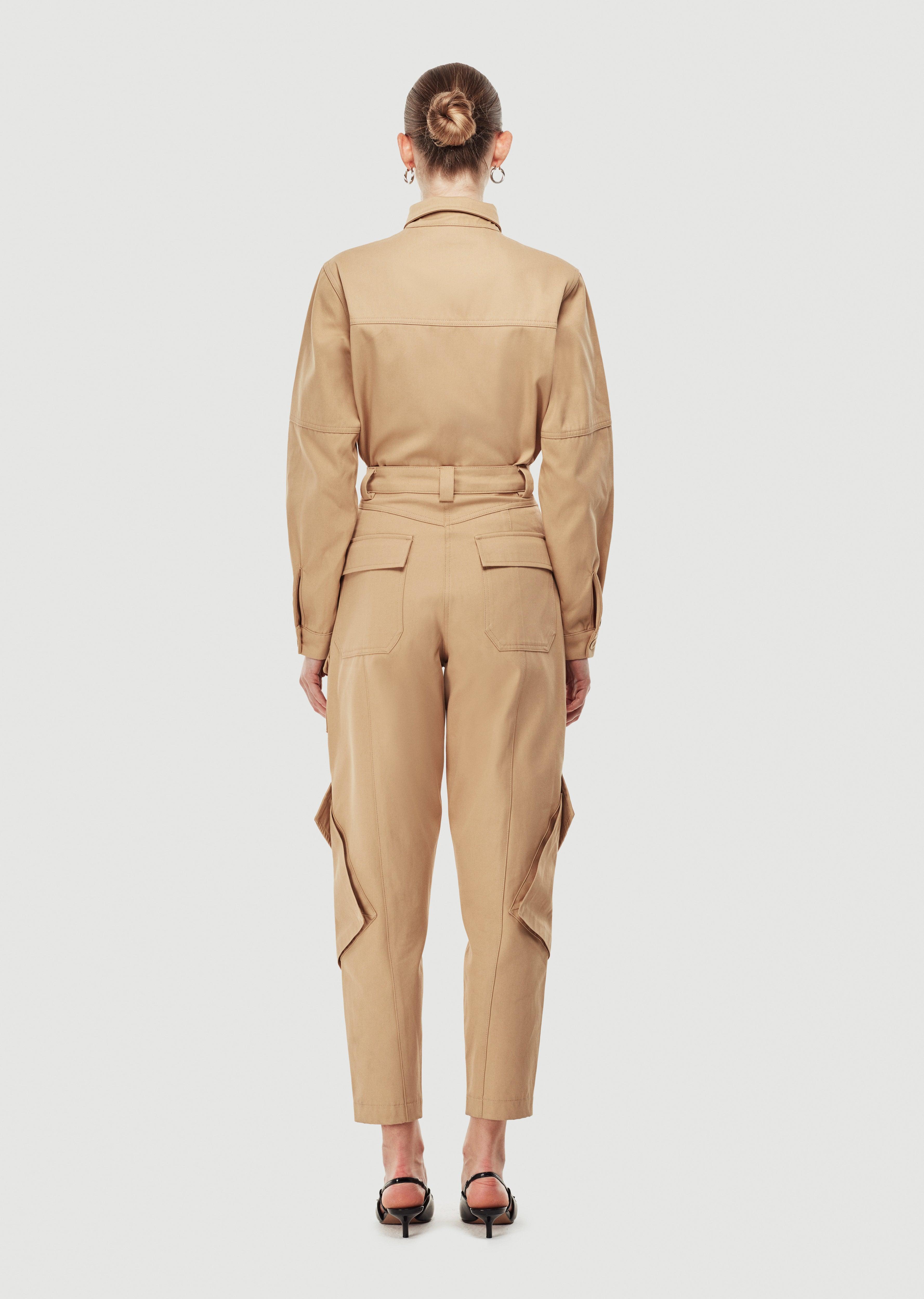 Cep ve cut-out detaylı, uzun kollu, havuç kesim tulum.