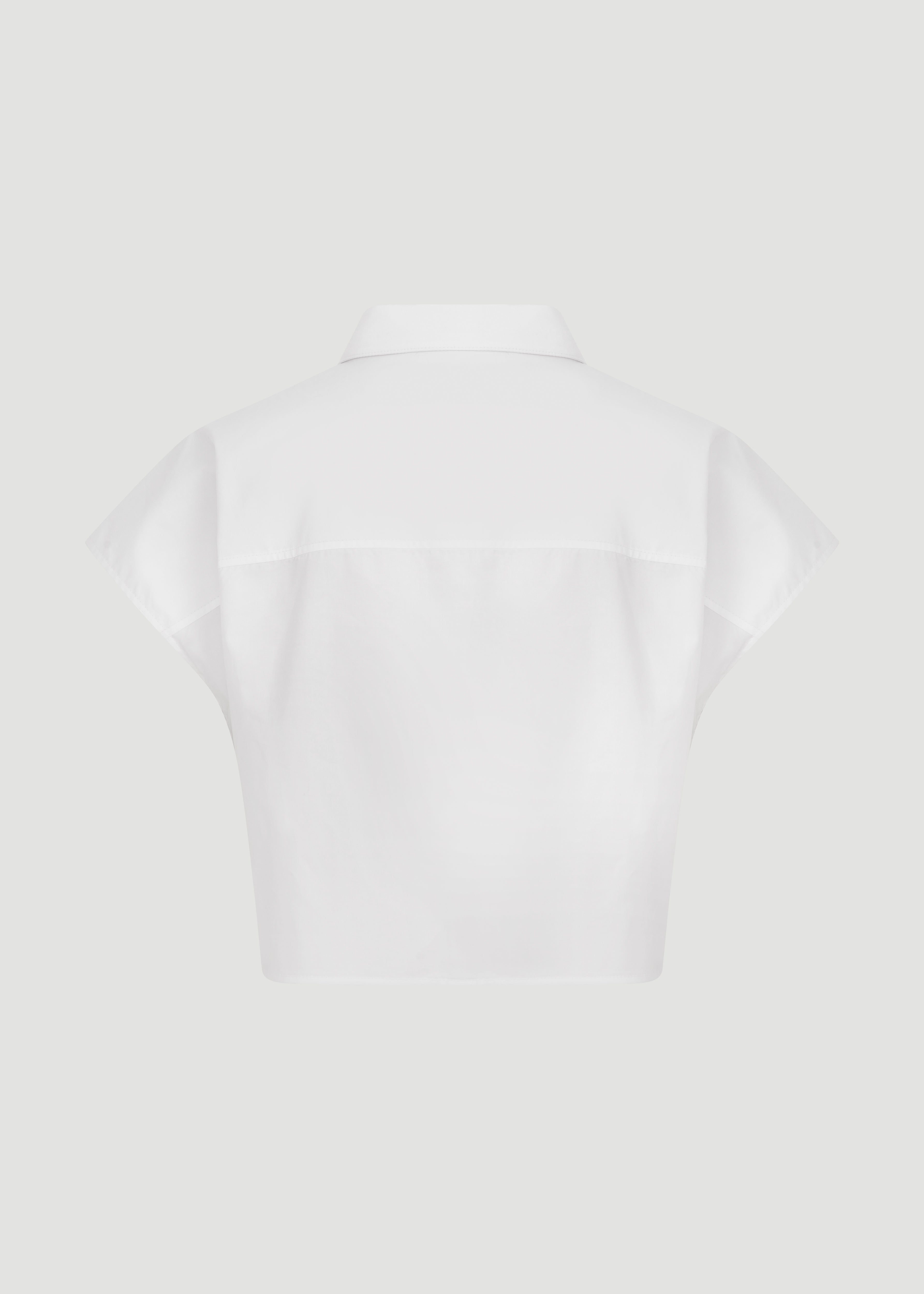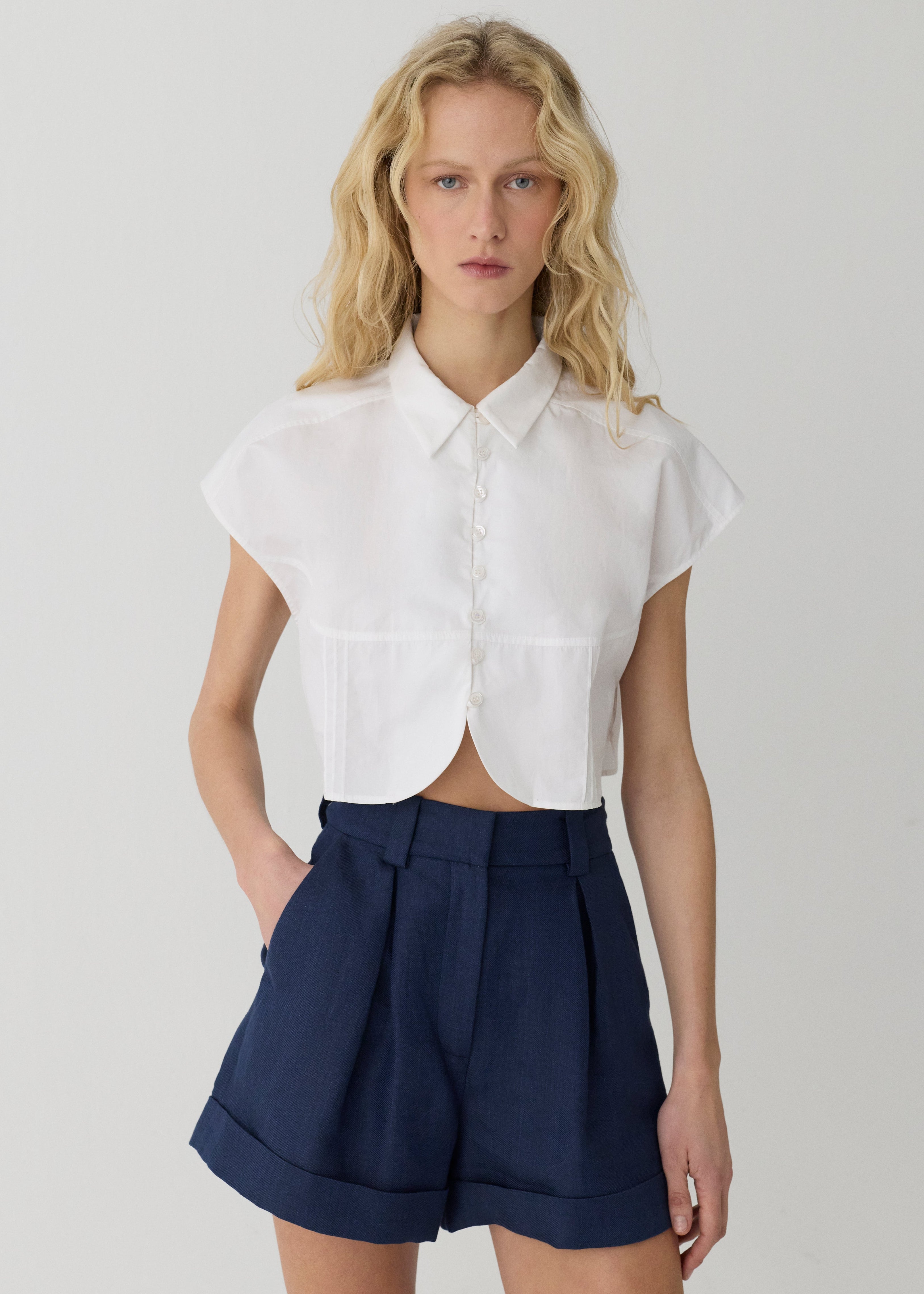 Kısa kollu, minik düğme detaylı, crop gömlek.