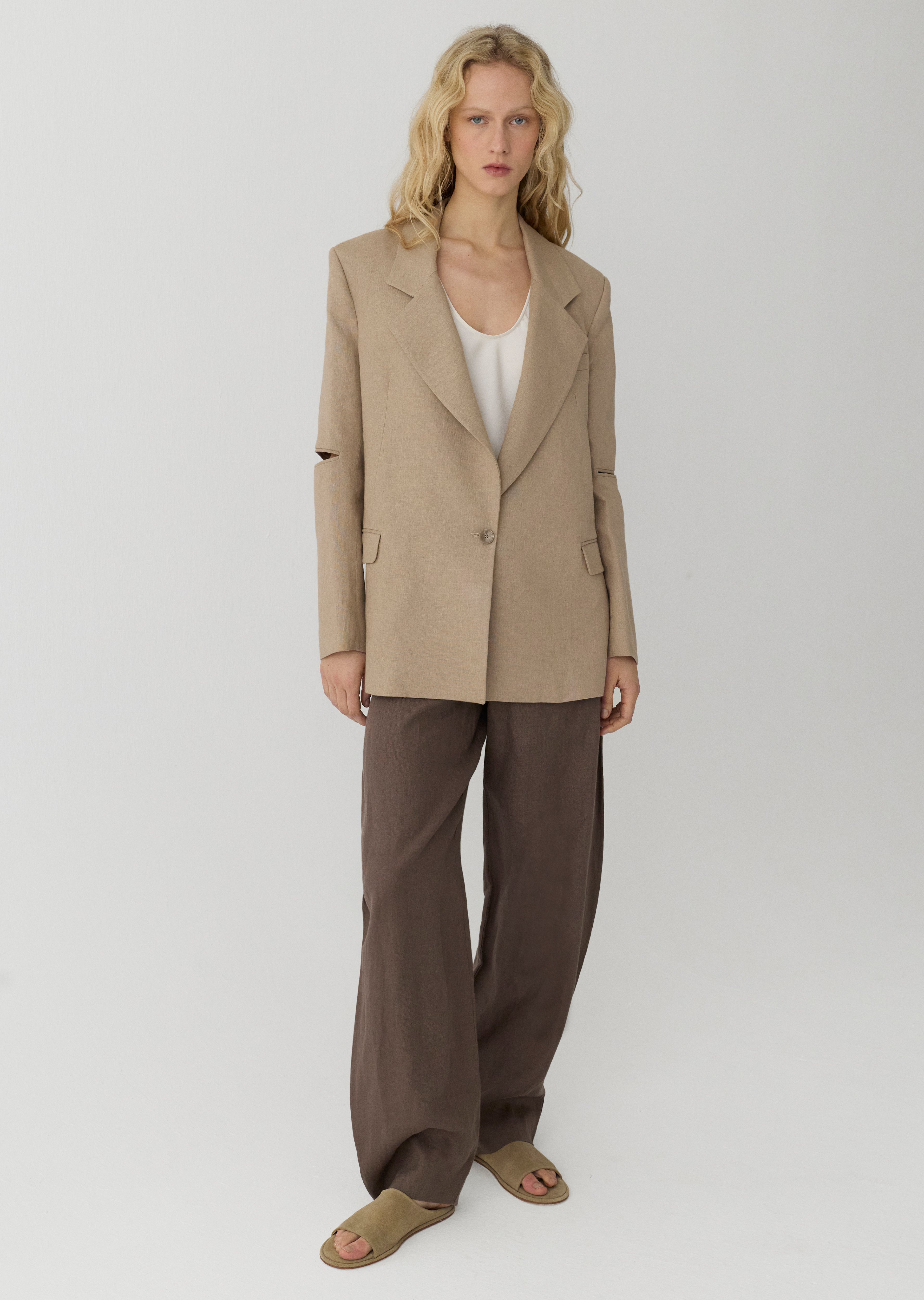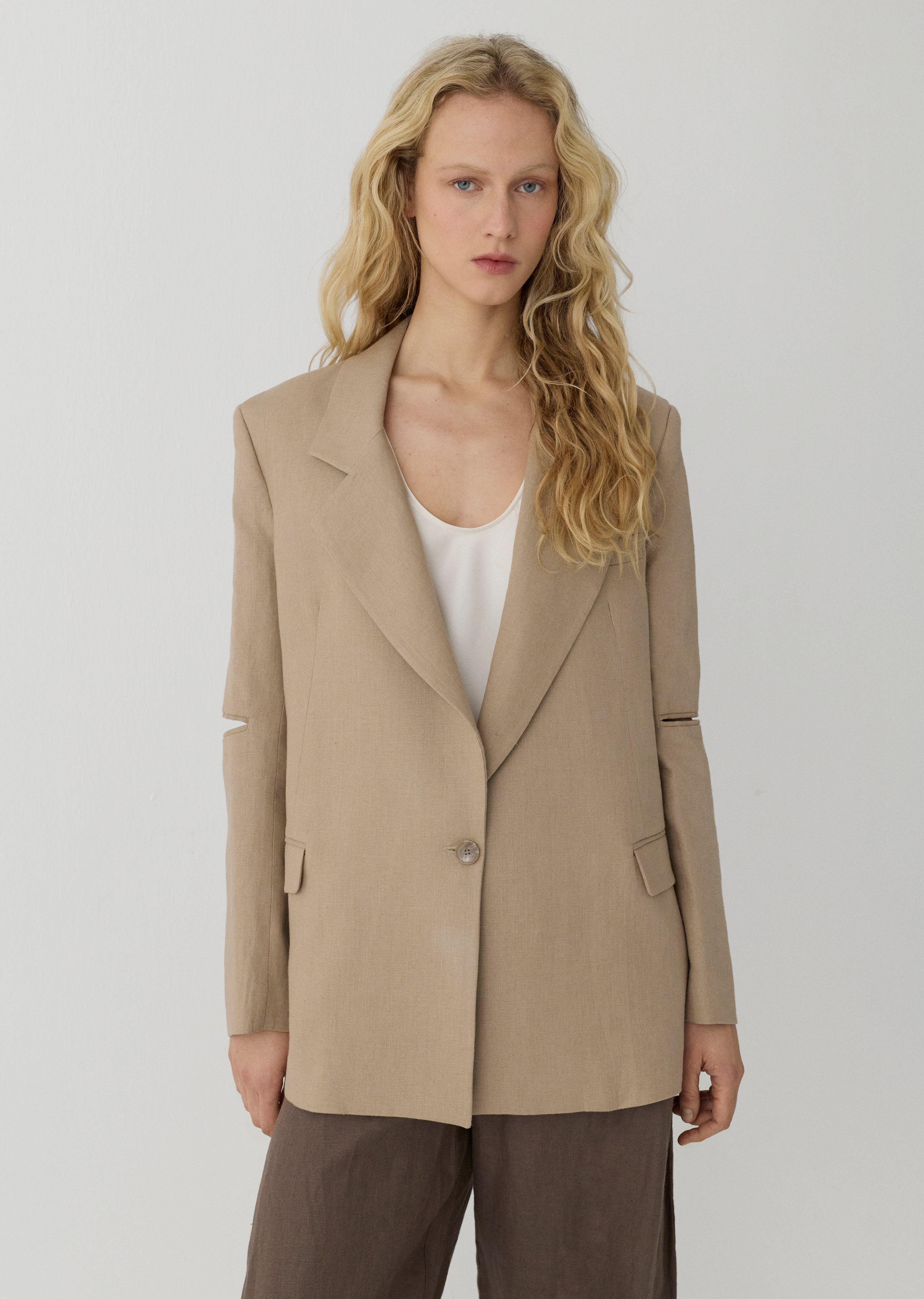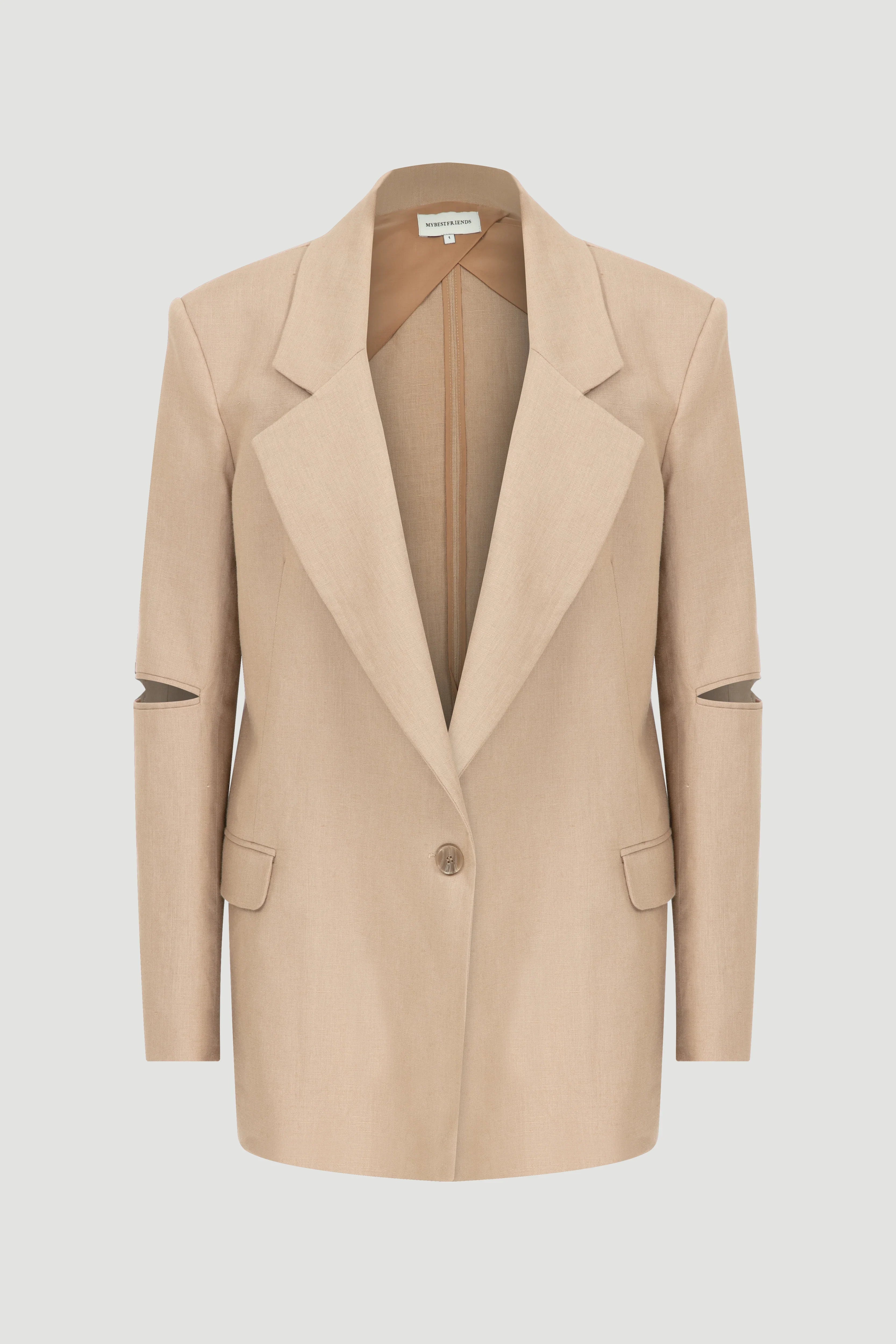 Cut out detaylı, keten blazer ceket.