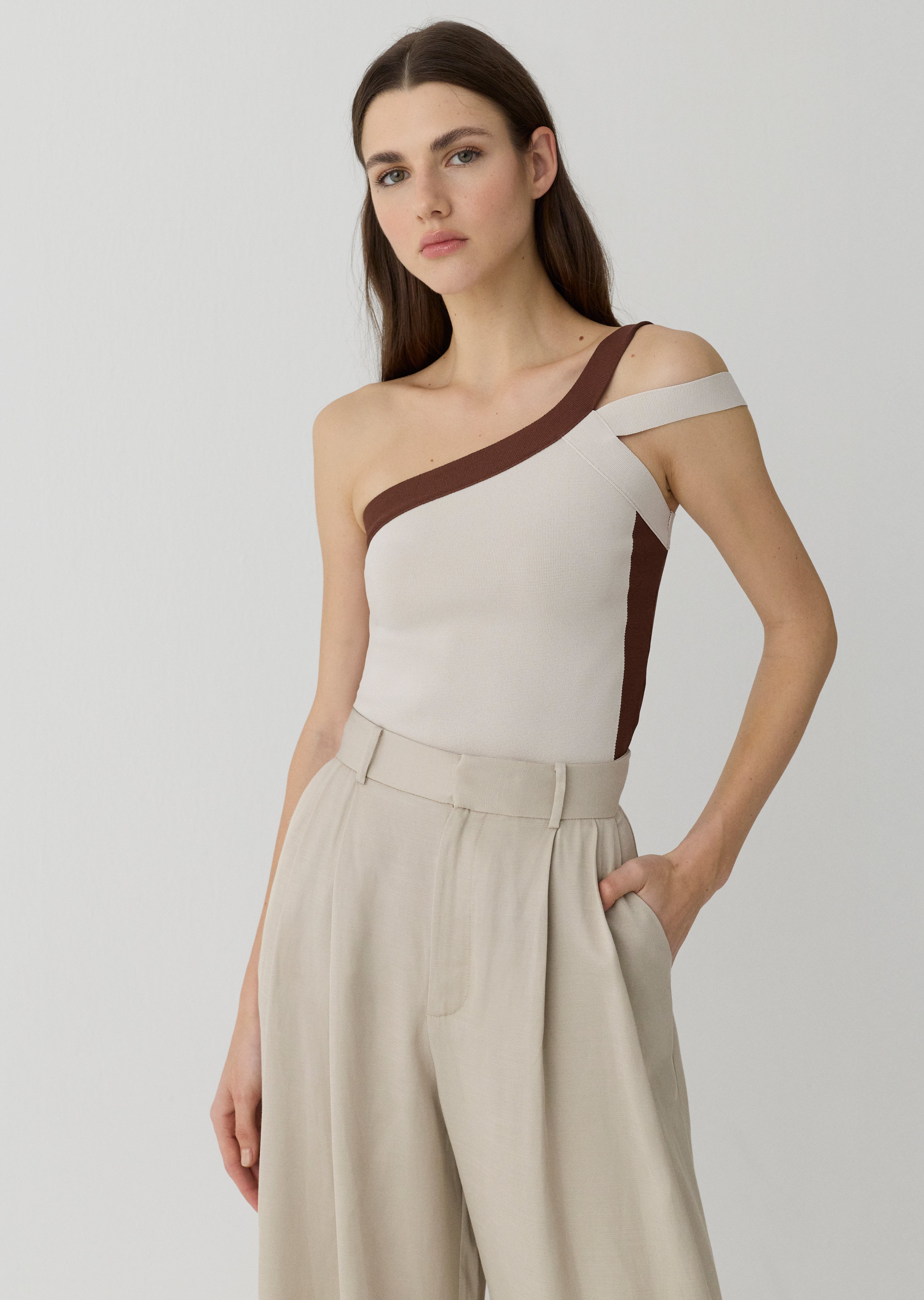 Tek omuz triko top.