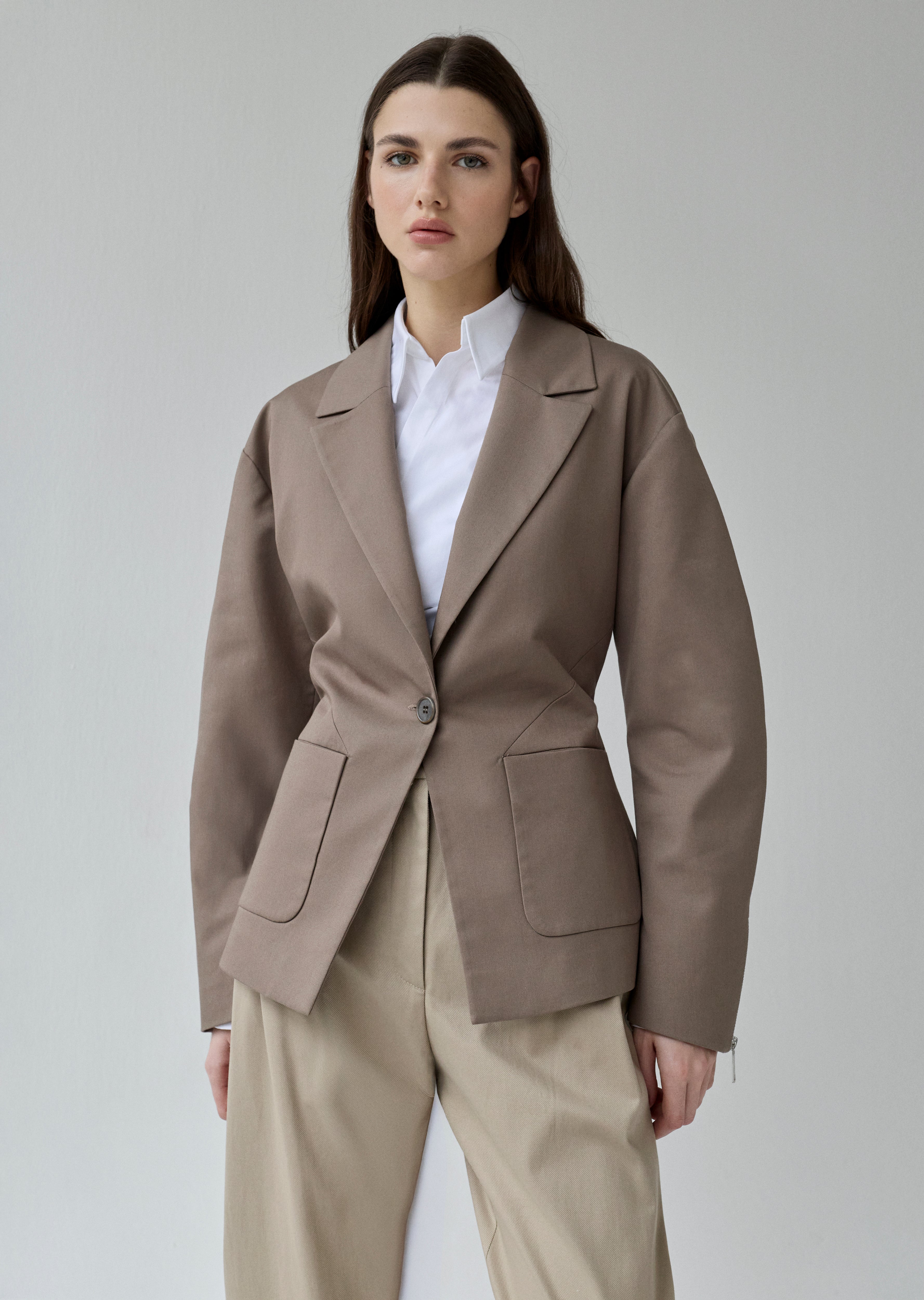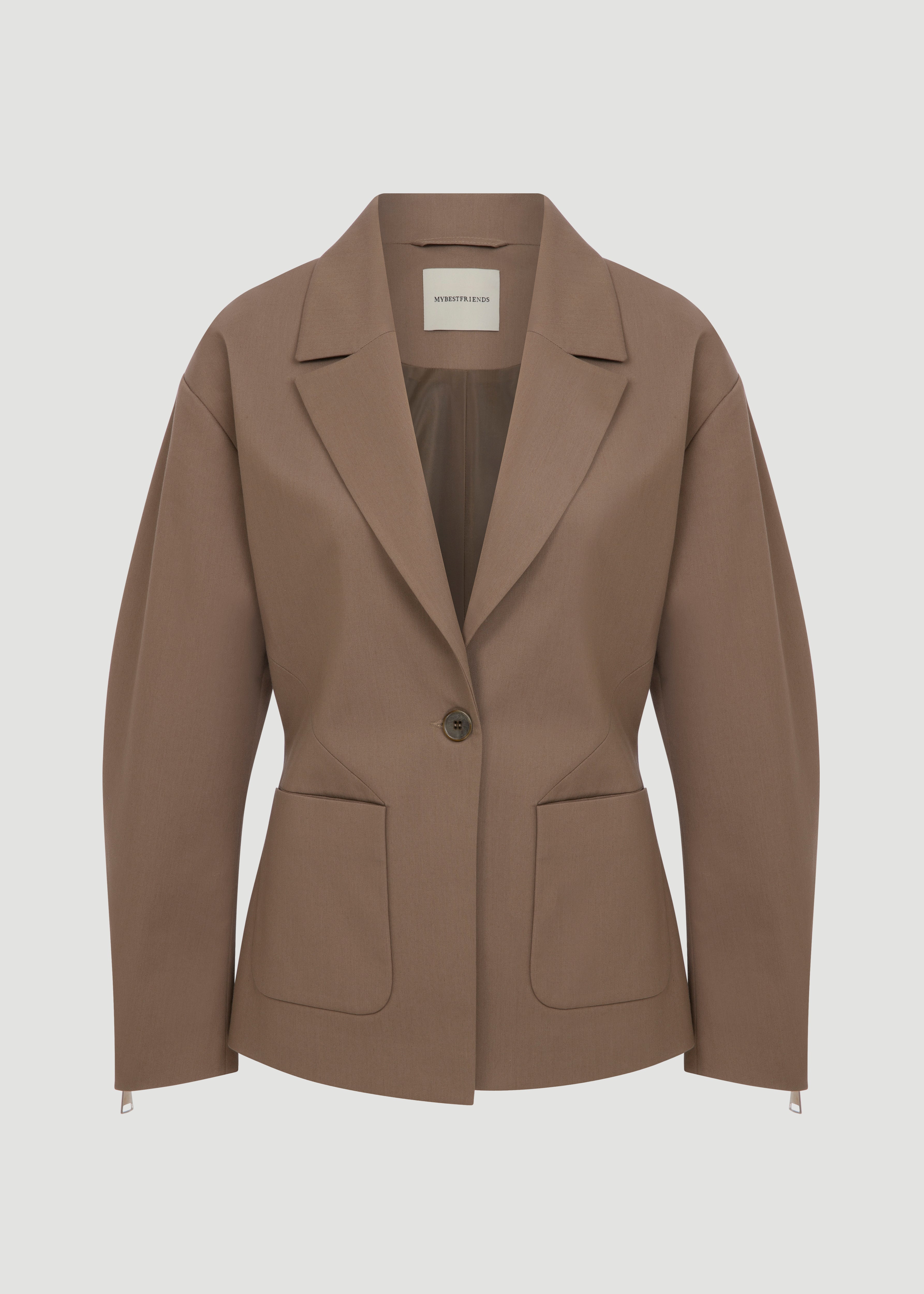 Cep detaylı, barrel kesim kollu blazer ceket.