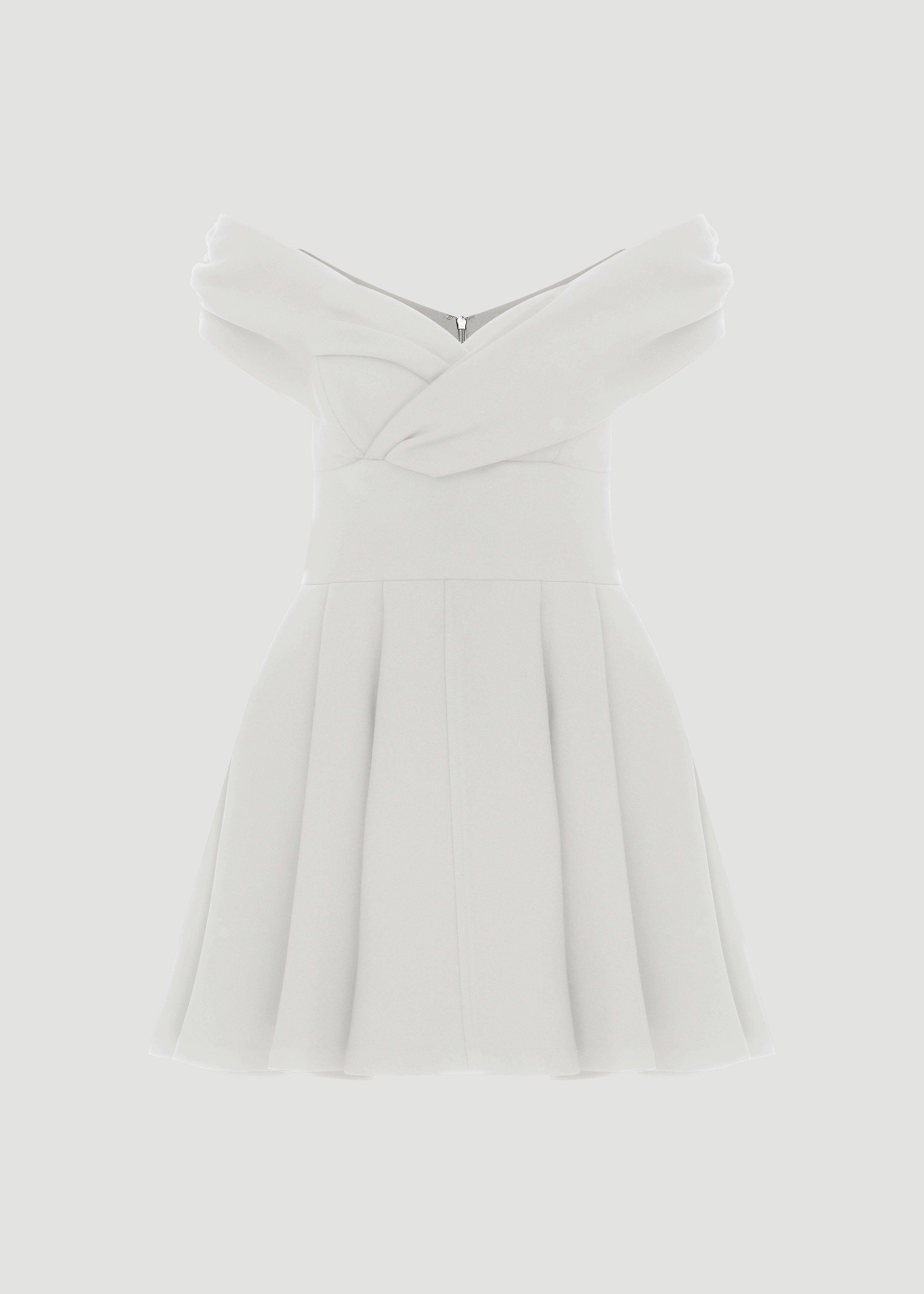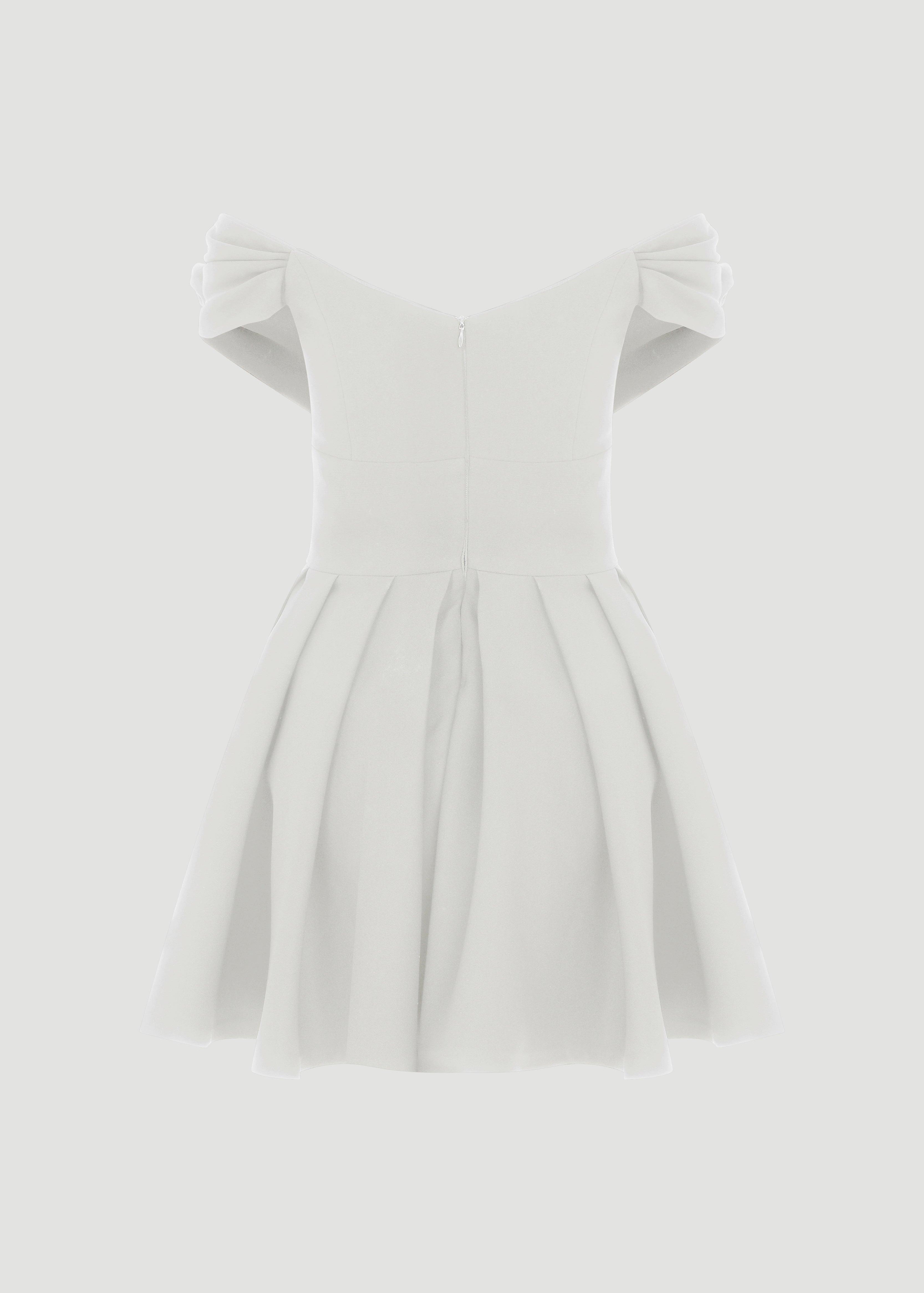 Prenses yakalı, pile detaylı mini elbise Omuzdan itibaren 84 cm'dir.