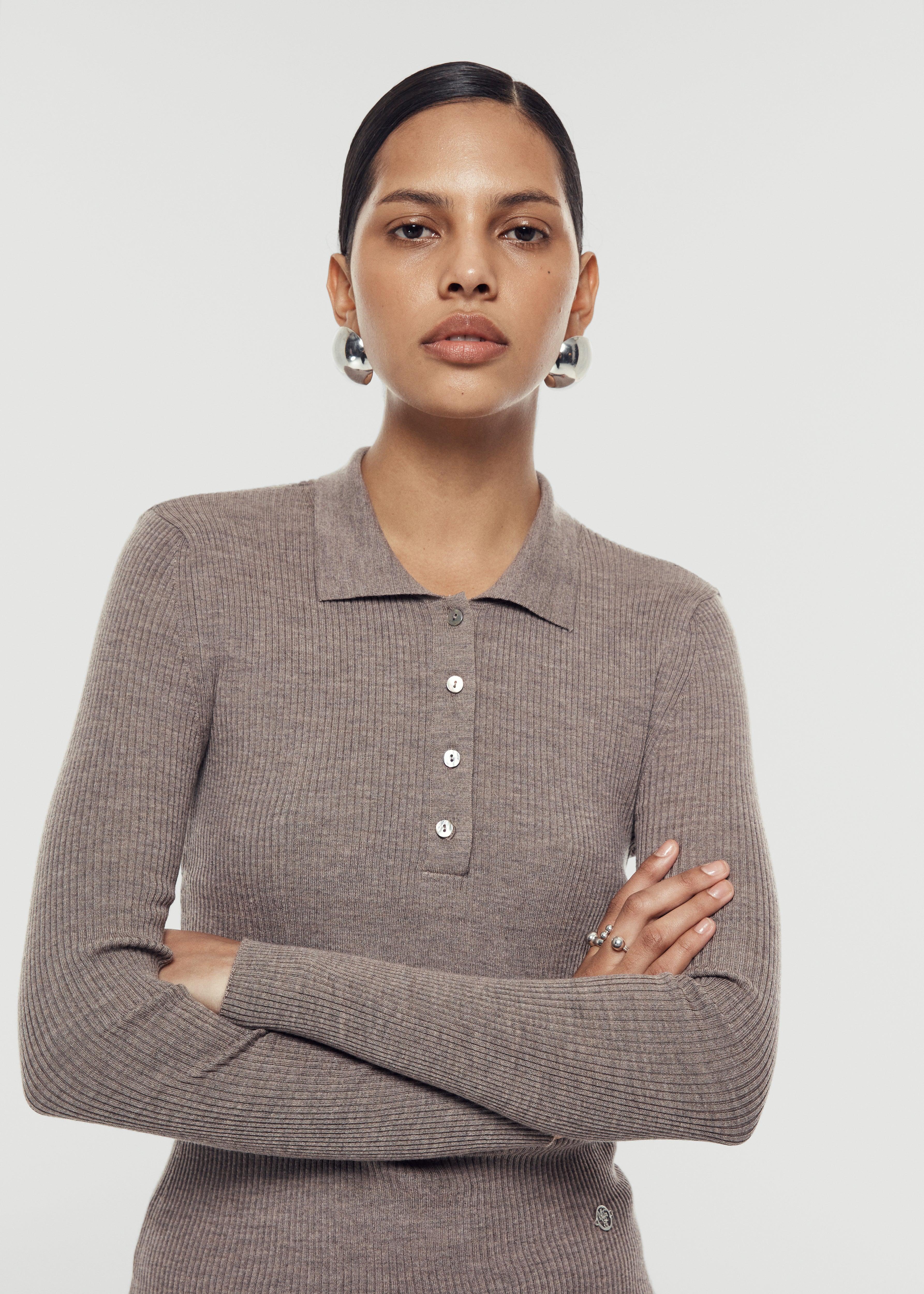Long-sleeved blouse with polo neck and button detail.