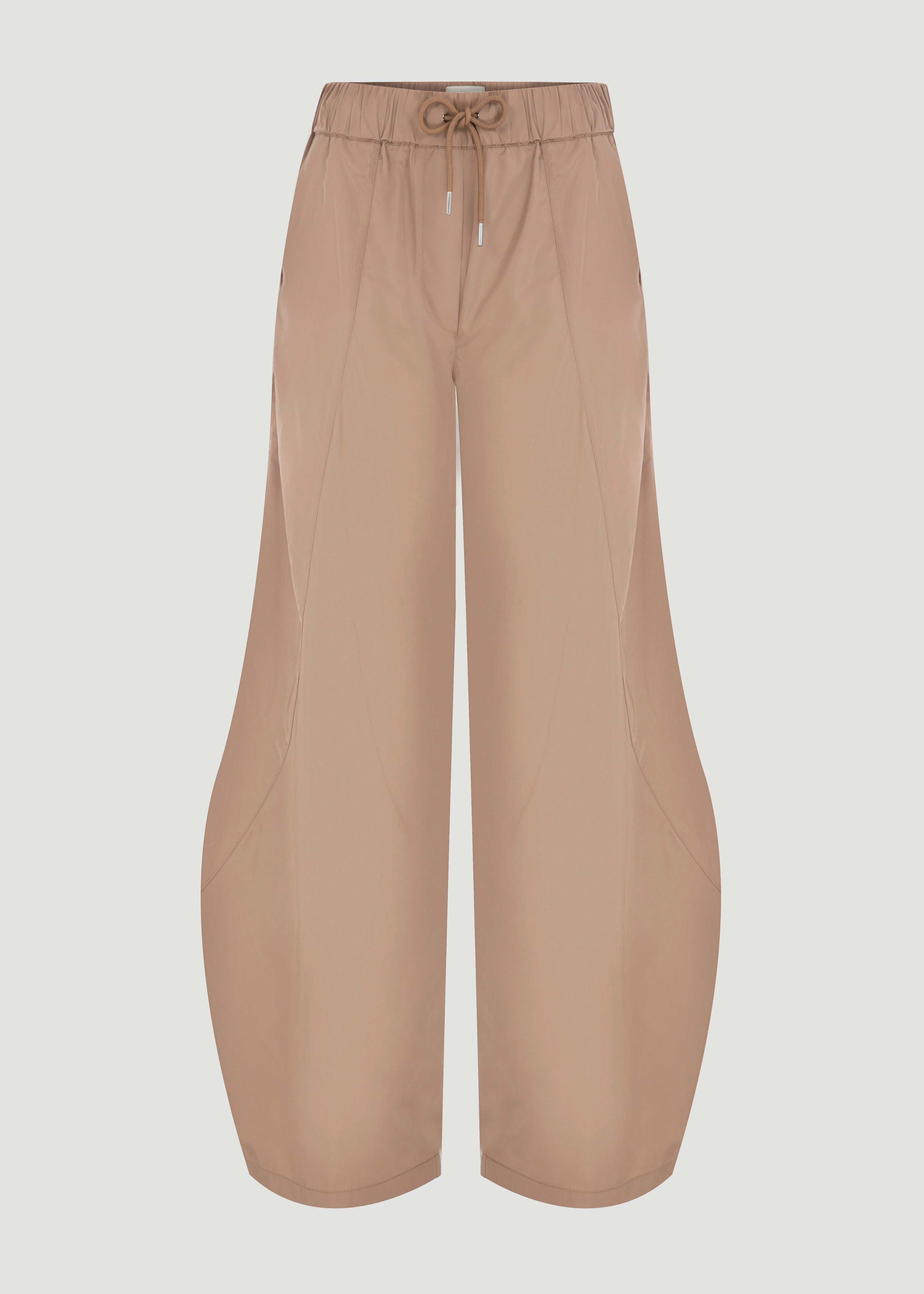 Beli büzgü ve bağcık detaylı ince pantolon.