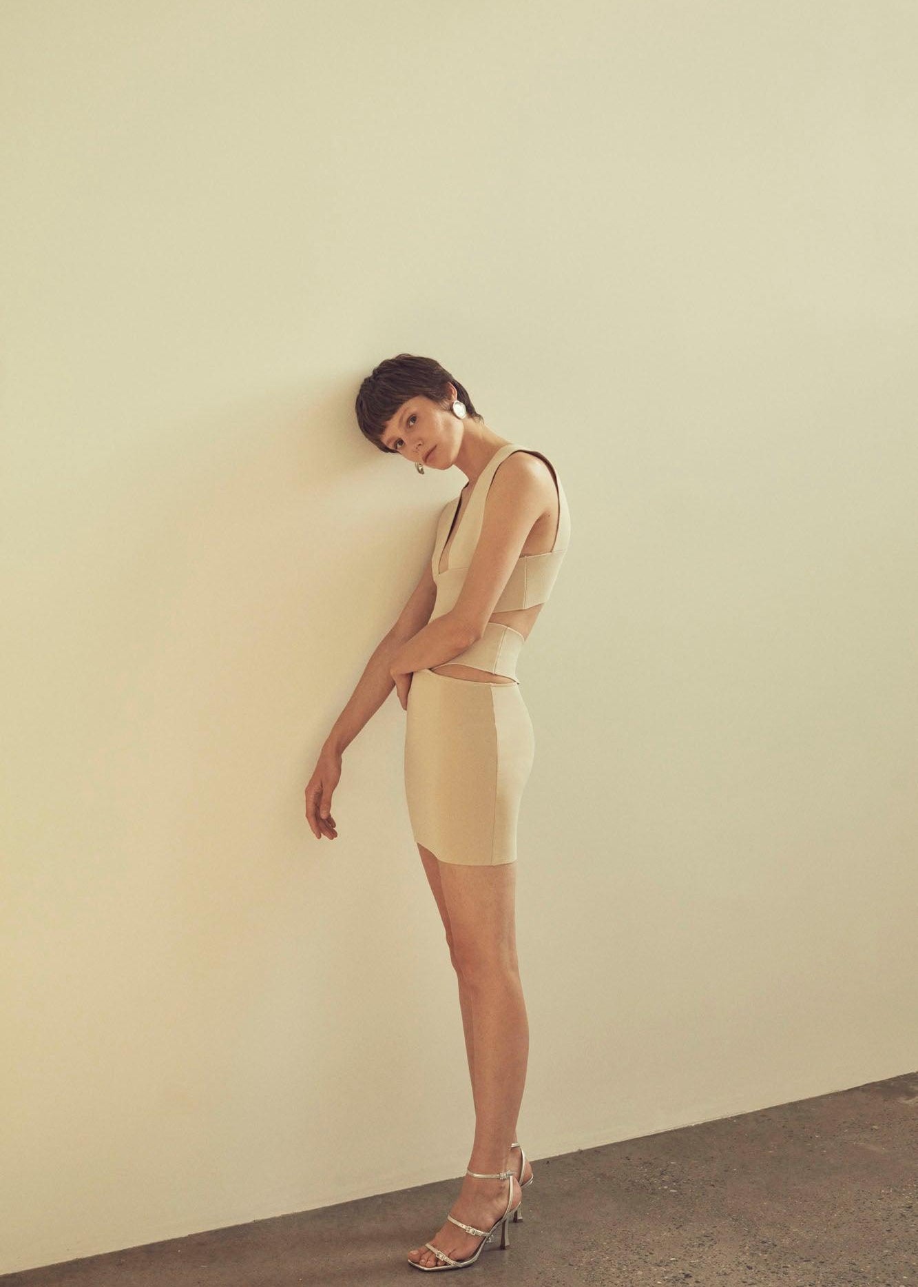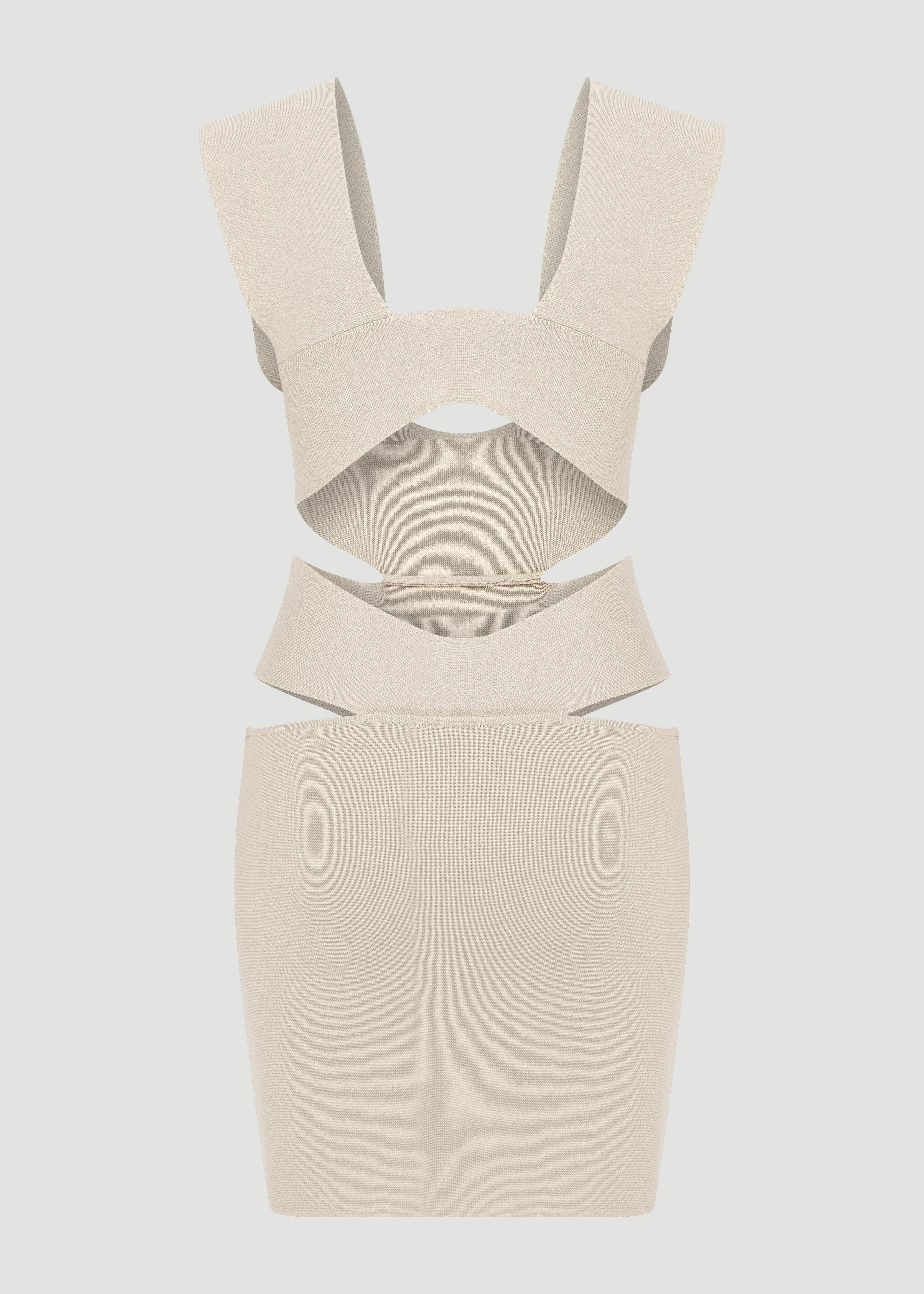 Cut-out detaylı, mini, triko elbise.