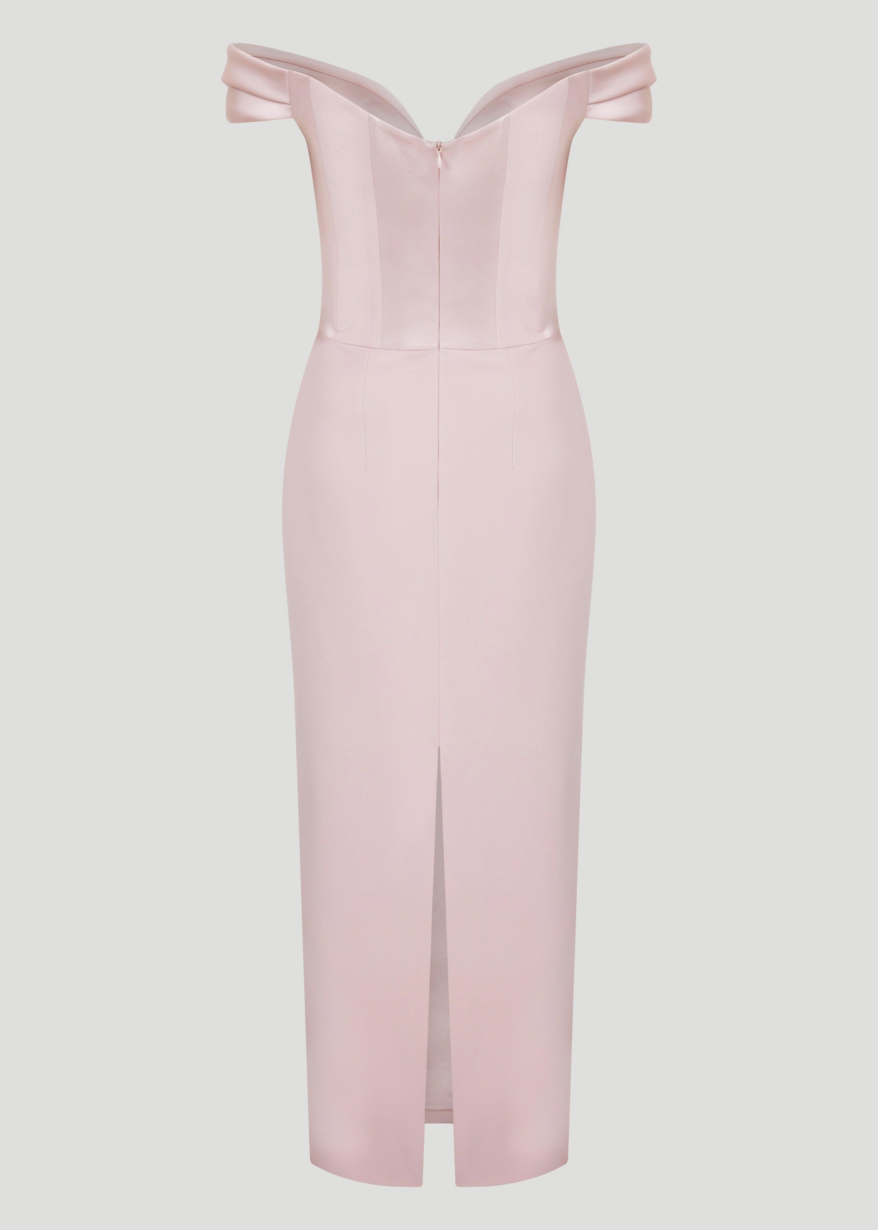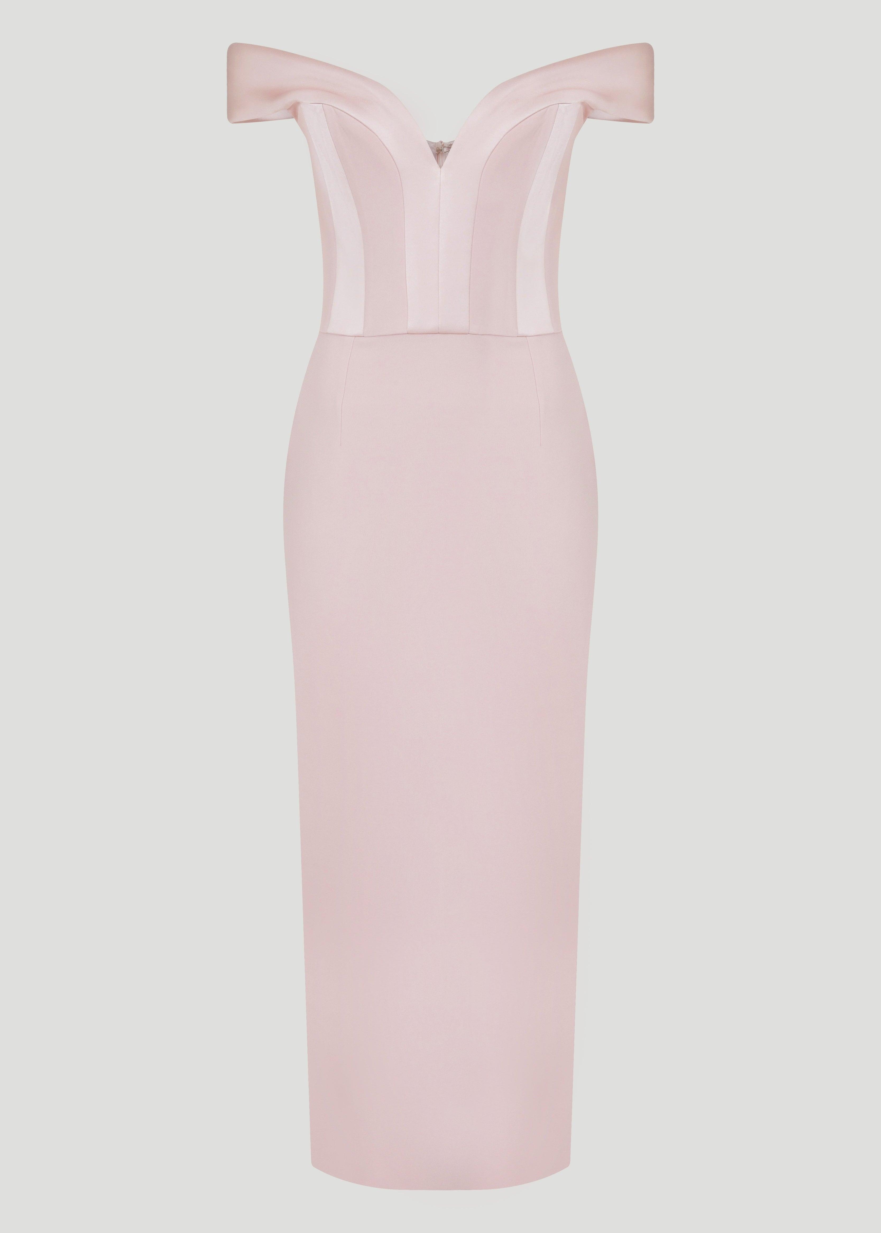 Kayık yaka midi boy elbise.