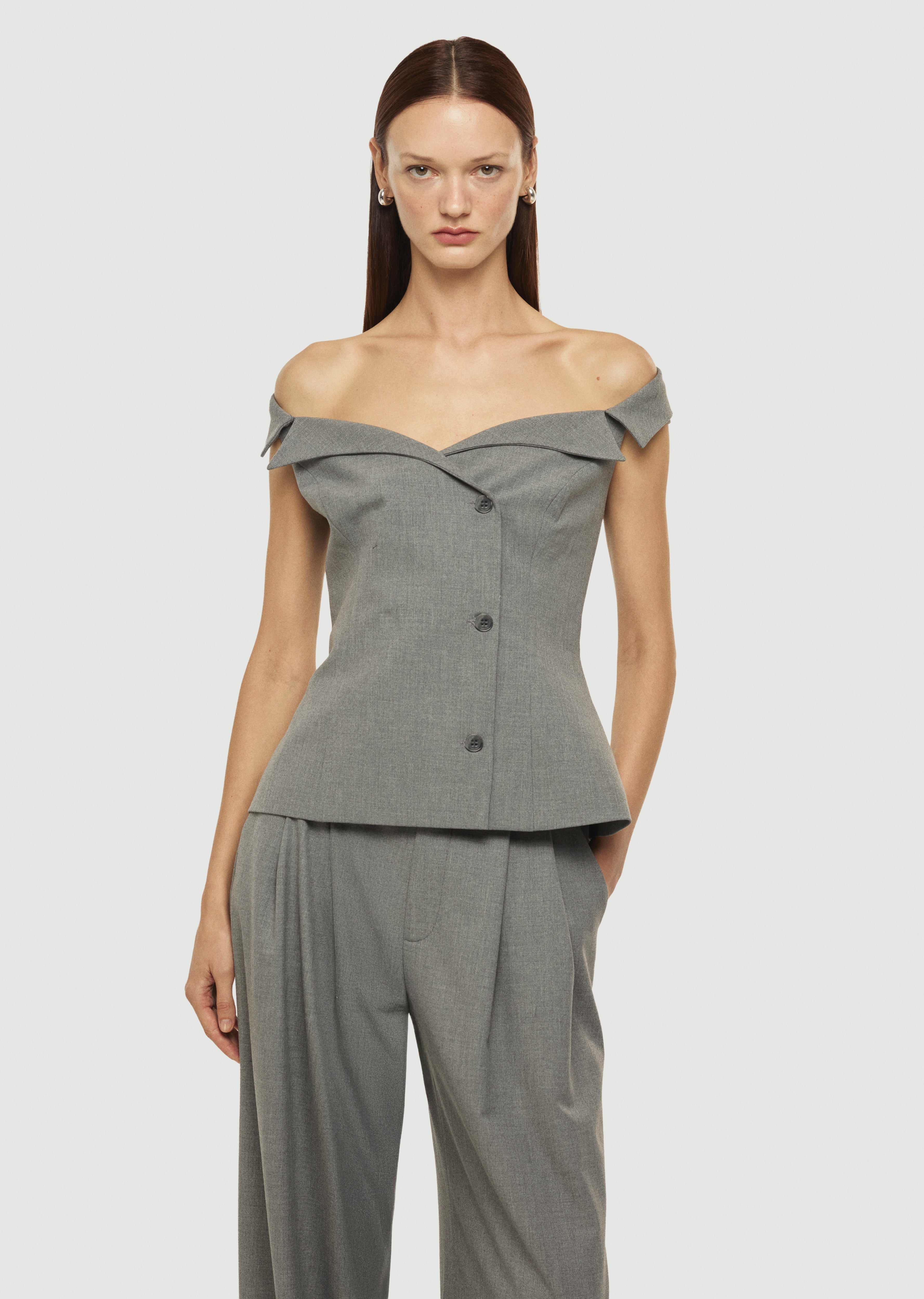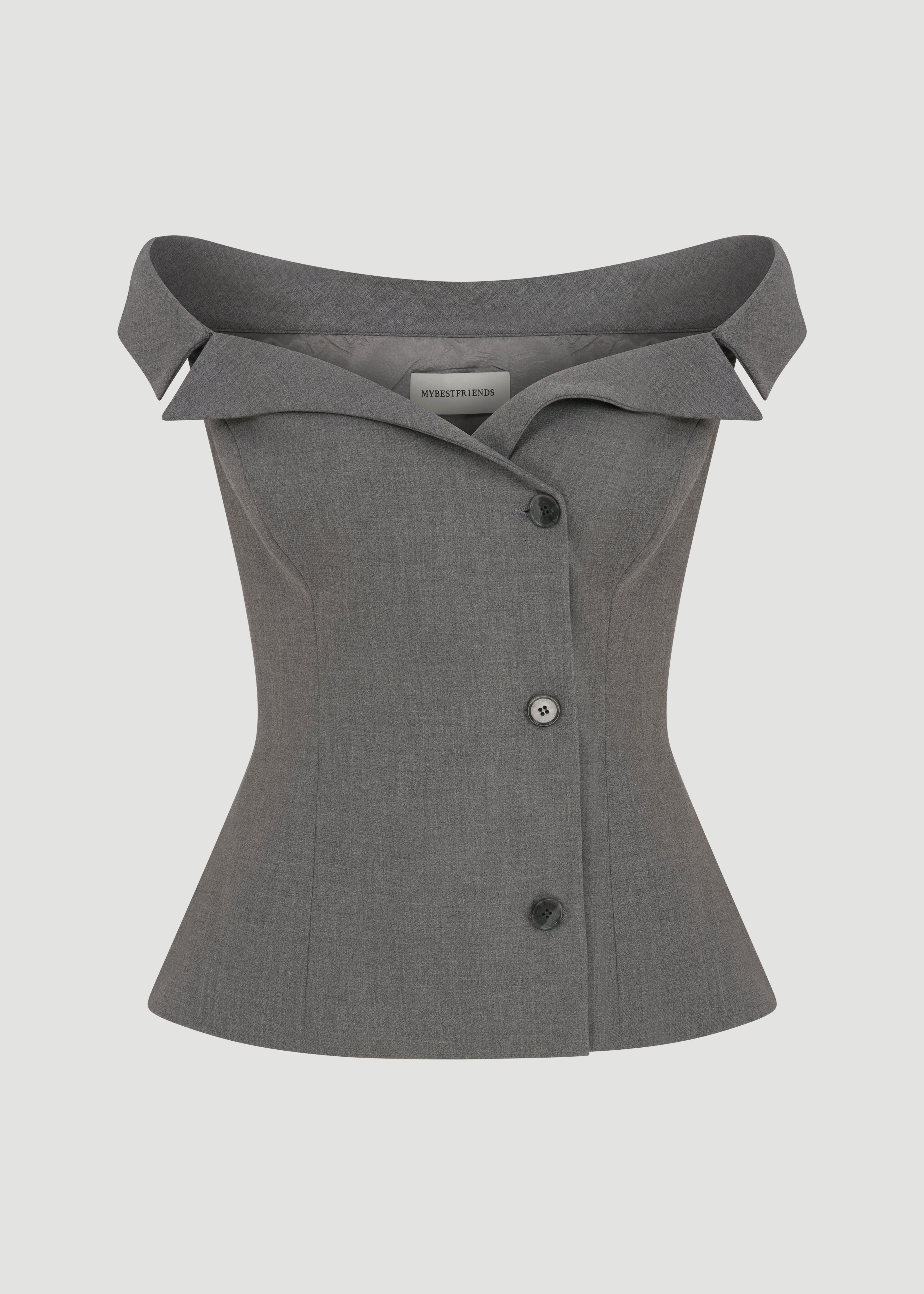 Prenses yakalı, düğme detaylı, bedene oturan yelek.